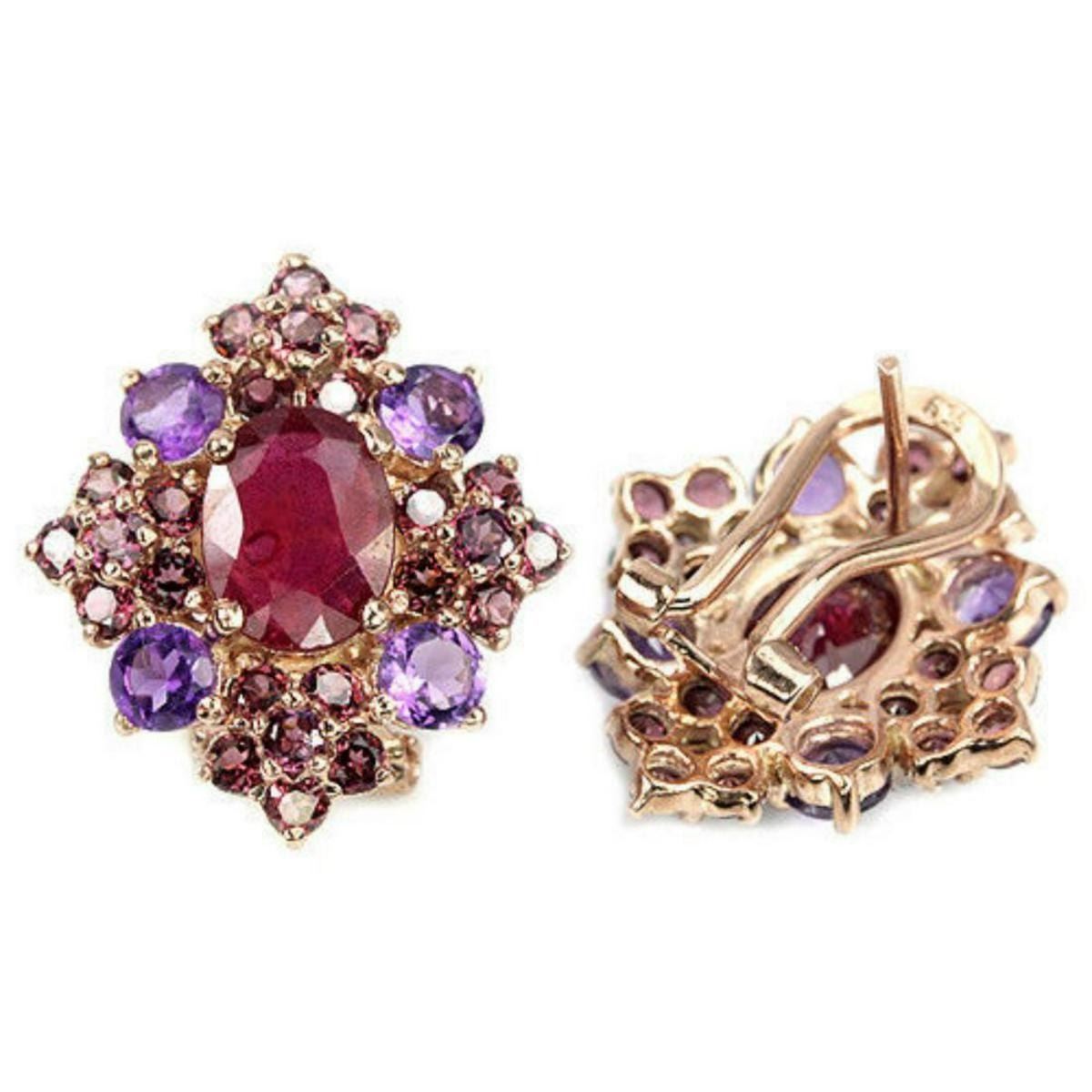 BLOOD RED RUBY RHODOLITE AMETHYST 925 SILVER EARRING 14K PINK GOLD COATING; STONE SHAPEOVAL & ROUNDSTONE DIMENSION9 X 7 MM. , 4 MM. , 2.5 MM. & 2.2 MM.ITEM WEIGHT7.5 GRAMCOLORMULTI COLORCLARITYTRANLUCENT & IF VVSLUSTERDAZZLINGTREATMENTUNHEATED & HEATEDORIGIN OF STONEAFRICA & BRAZILHARDNESS7 - 9OTHERFACE OF EARRING 22 X 20 MM.
