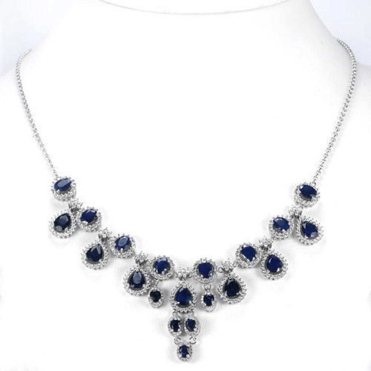 GENUINE AAA BLUE SAPPHIRE & WHITE CZ 925 SILVER NECKLACE 14K WHITE GOLD COATING; LENGTH OF ITEM (Inch.)20.25 ( RESIZE : NO )ITEM QUANTITY1STONE SHAPEPEAR & ROUND FACET CUTSTONE DIMENSION7 X 5 MM. , 6 X 4 MM. , 5 X 4 MM.ITEM WEIGHT27.72 GRAM (135 cts)COLORBLUECLARITYTRANSLUCENTLUSTERALLURINGTREATMENTHEATEDHARDNESS9.0WHITE CUBIC ZIRCONIA 1.5 MM. , 1 MM.