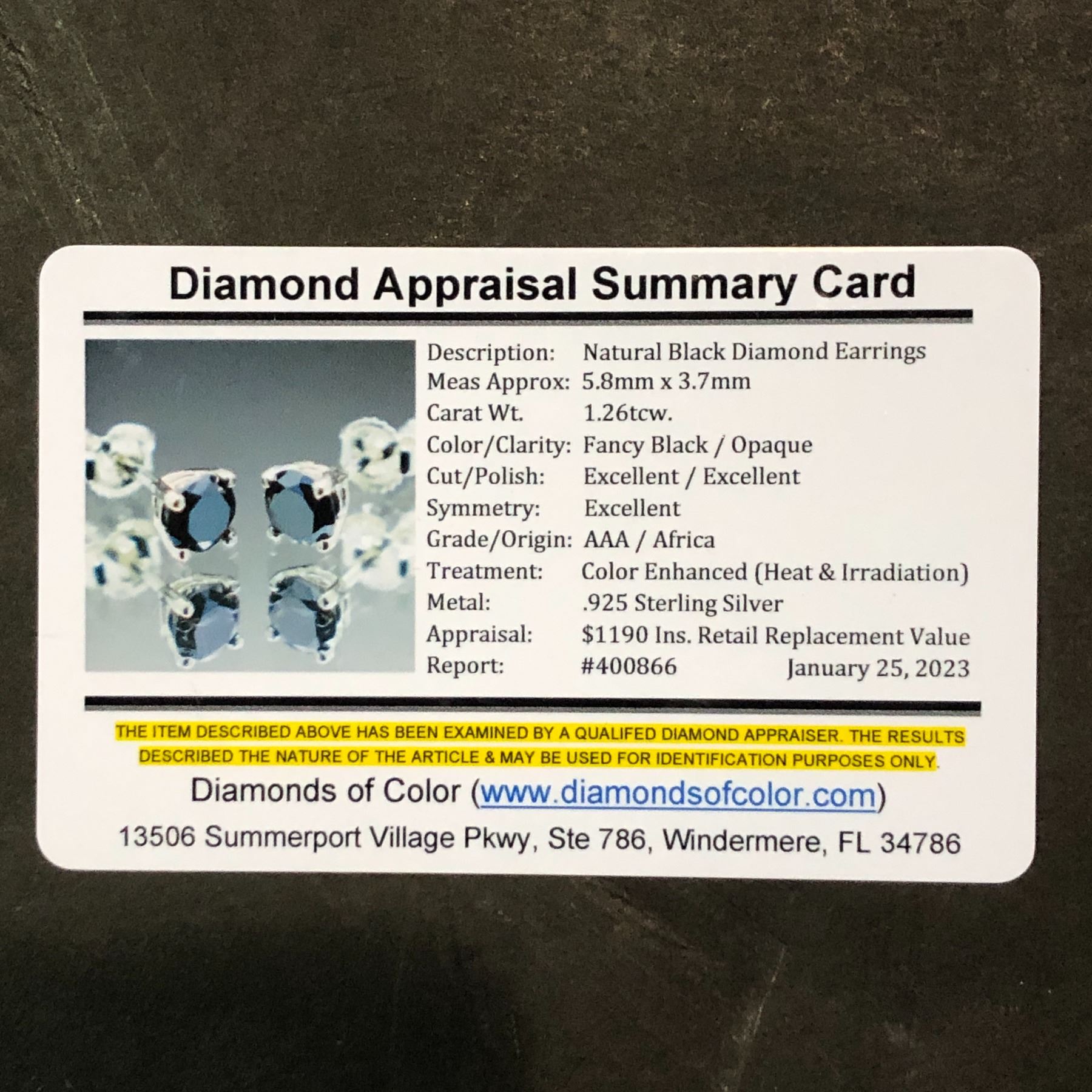 Natural Black Diamond Earrings - retail appraisal value $1190 USD (w/ US Diamond Appraisal Summary Certificate)