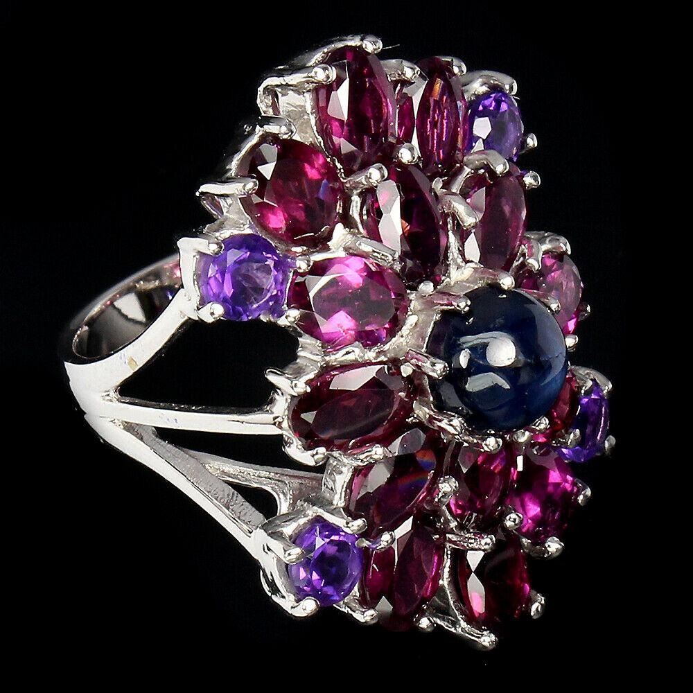 925 STERLING SILVER;PLATE-14K WHITE GOLD;RING SIZE(resizeable)8;MAIN STONE-BLACK OPAL;OTHER GEMS-AMETHYST, RHODOLITE GARNET;TOTAL WEIGHT-11.01 GRAM (TOTAL WEIGHT OF SILVER + STONE)DIMENSION-* STONE 4.0 TO 7.0 MM. * RING SIZE 8.0 * FACE RING 30.0 X 20.0 MM.MAIN STONE SHAPE-ROUND CABOCHON;MAIN STONE COLOR-HOT RAINBOW LUSTER;ORIGIN-ETHIOPIA;HARDNESS-5;