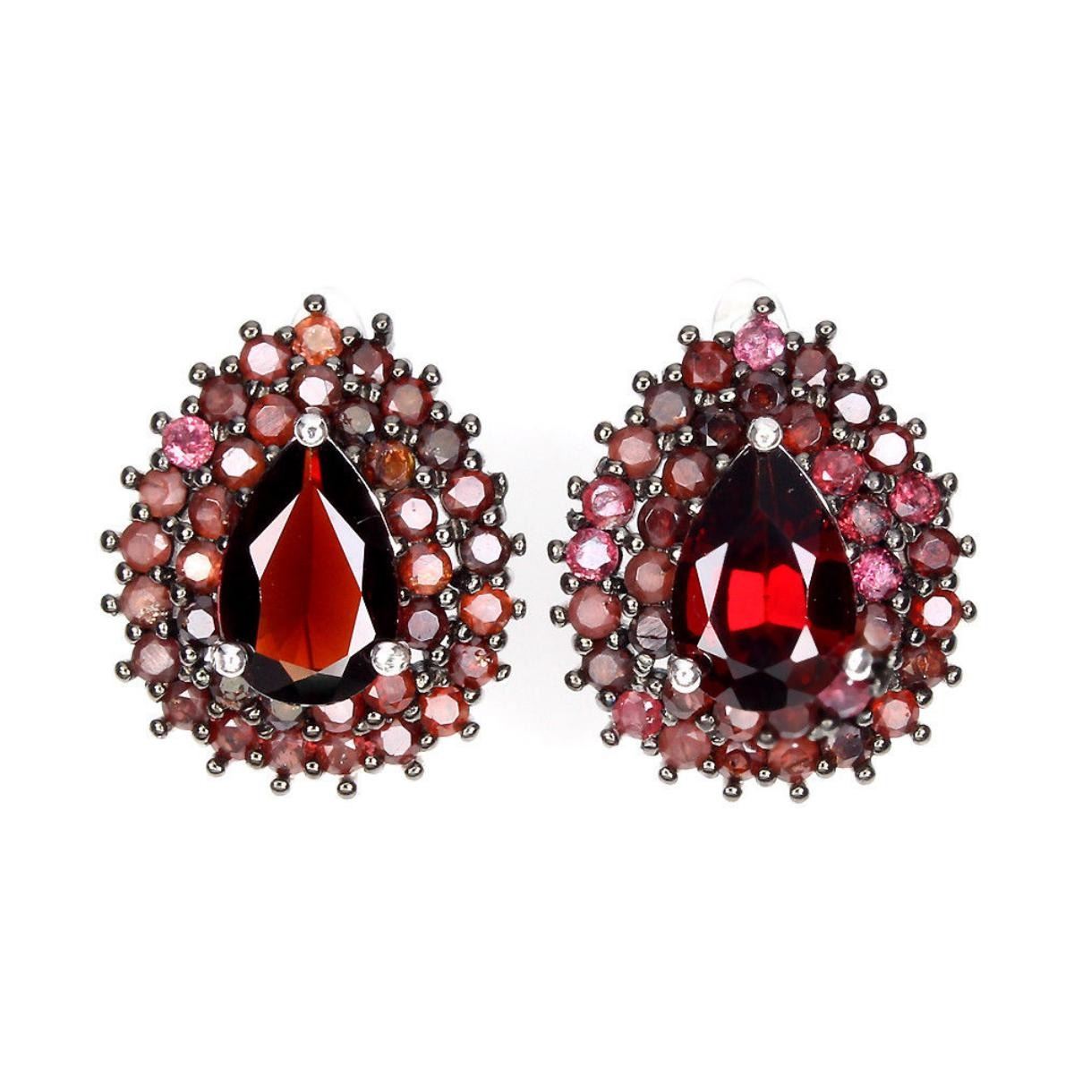 925 STERLING SILVER.... PLATE -2-TONE BLACK RHODIUM WHITE 14K GOLD ; MAIN STONE -MOZAMBIQUE GARNET TOTAL WEIGHT -31.16 CT (TOTAL WEIGHT OF SILVER + STONE) DIMENSION * STONE 1.5 TO 9.0 X 6.0 MM. * FACE EARRINGS 17.0 X 14.0 MM. MAIN STONE SHAPE PEAR CUT MAIN STONE COLOR TOP BLACK RED CLARITY/GRADE IF TO VVS LUSTER ELEGANT TREATMENT UNHEATED ORIGIN AFRICA HARDNESS 7.0 - 7.5