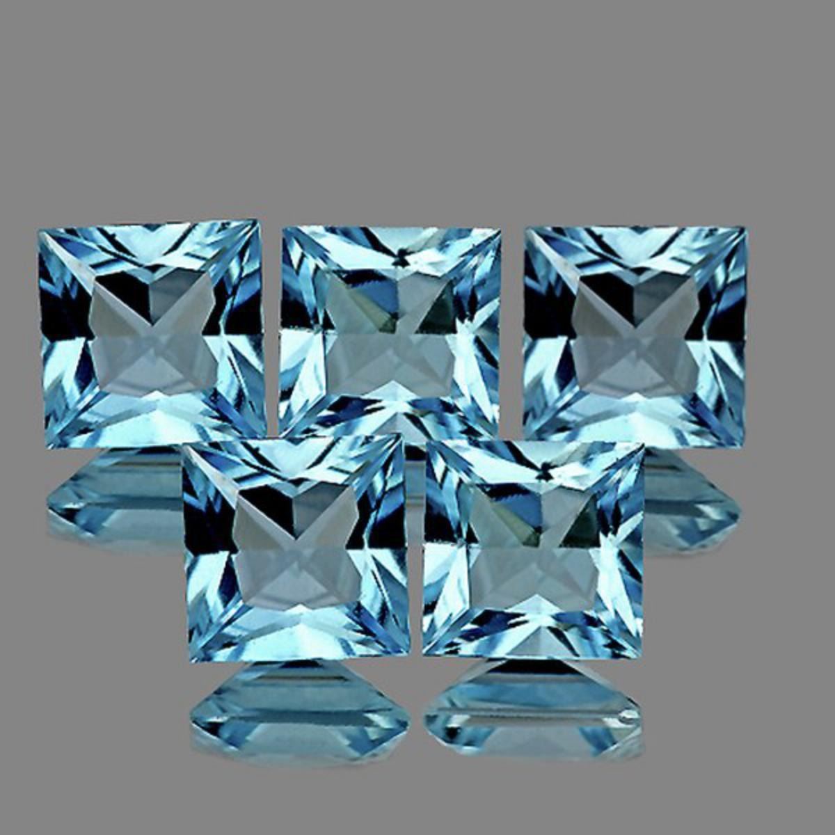 Natural Aquamarine (Earthly Mined)SIZE ( L x W x D ) : 4.20 mm;COLOR : BlueSHAPE : Square (Princess Cut)QUANTITY : 5 pieces;LUSTER : ExcellentCLARITY : Flawless - VVS;HARDNESS : 8;ORIGIN : Santa Maria de Itabira; TREATMENT : 100% Natural, Unheated;