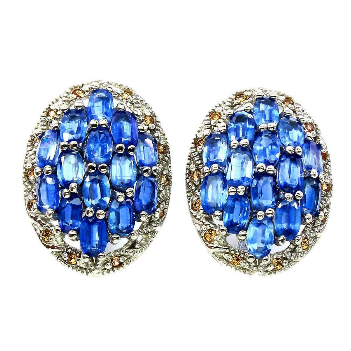 925 STERLING SILVER;PLATE-14K WHITE GOLD;MAIN STONE-KYANITE;OTHER GEMS-SAPPHIRE;TOTAL WEIGHT-10.99 GRAM (TOTAL WEIGHT OF SILVER + STONE)DIMENSION-* STONE 1.0 TO 6.0 X 3.0 MM.;* FACE EARRINGS- 23.0 X 18.0 MM.;MAIN STONE SHAPE-OVAL CUT;MAIN STONE COLOR- BLUE;CLARITY/GRADE-IF TO VVS;TREATMENT-UNHEATED;ORIGIN-NEPAL;