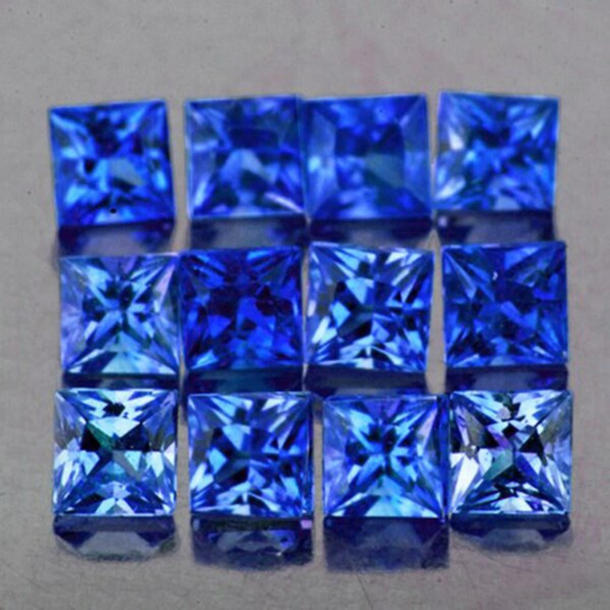 Natural Sapphire (Earthly Mined)SIZE ( L x W x D ) : 2.30 mmCOLOR : Blue;SHAPE : Square;QUANTITY : 12 pieces;LUSTER : Excellent!CLARITY : Flawless - VVS;HARDNESS : 9;ORIGIN : Ceylon;