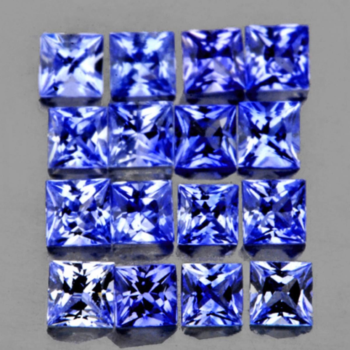Natural Blue Sapphire; SHAPE : Square (Princess Cut) SIZE ( L x W x D ) : 2.00 mm; QUANTITY : 16 pieces ( Perfect Matched Set) COLOR : Ceylon Blue ; CLARITY : Flawless-VVS; ORIGIN : Ceylon; HARDNESS : 9; LUSTER : AAA Fire!!! TREATMENT : UNHeated 100% Natural;
