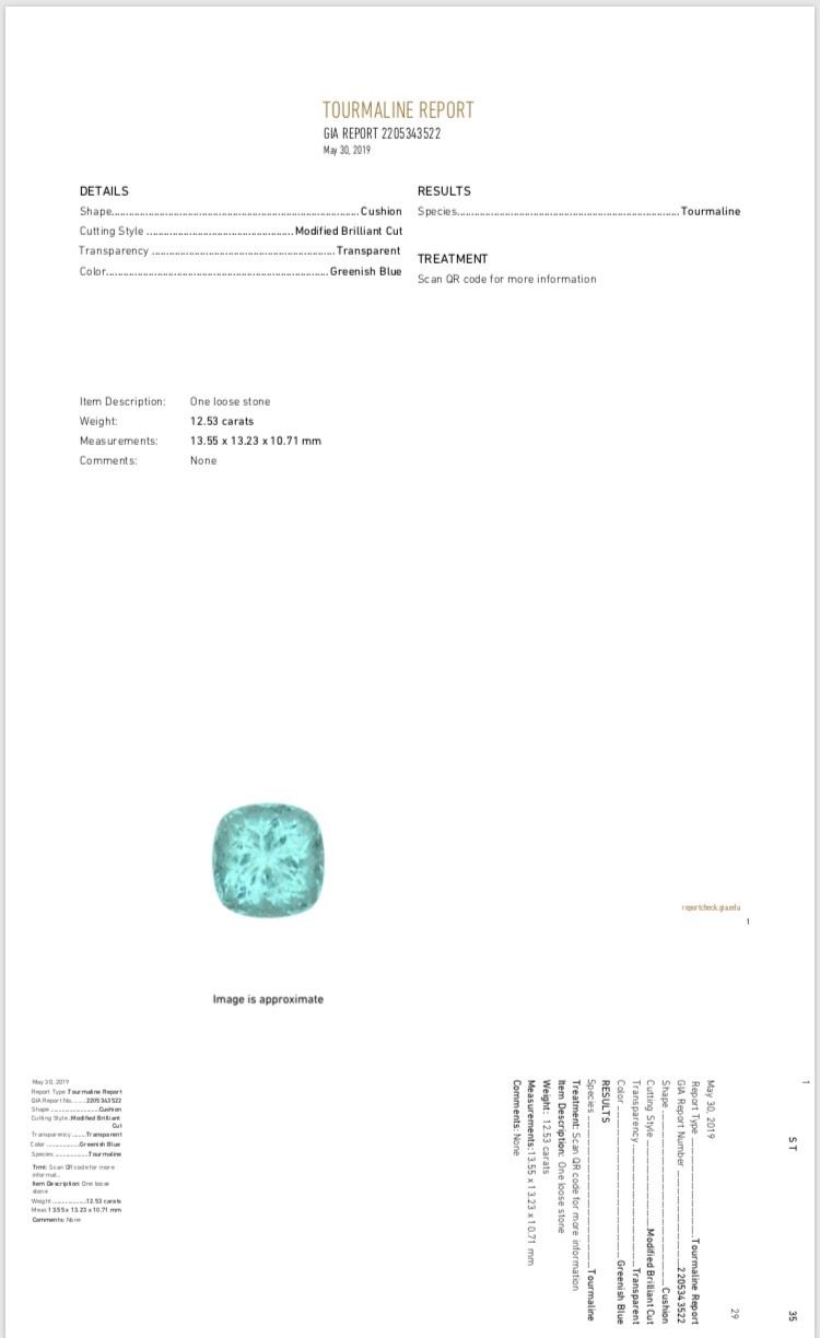 Natural Cushion Tourmaline 12.53 Carats ......Eye Clean (VS Clarity)......GIA Certified