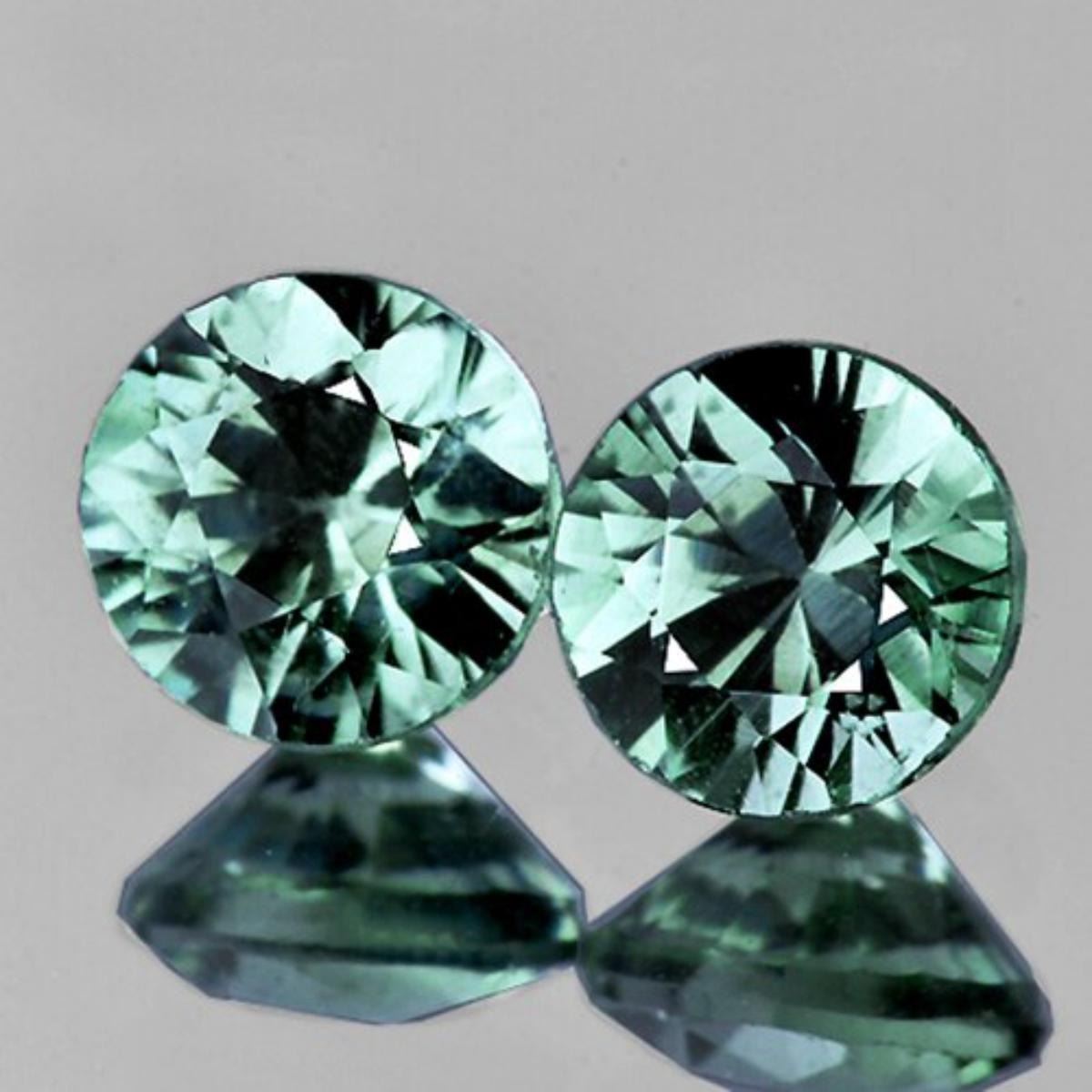 Natural Sapphire; SHAPE : Round (Diamond Cut) SIZE ( L x W x D ) : 4.00 mm; QUANTITY : 2 pieces ( Perfectly Matched Pair) COLOR : Mozambique Bluish Green; CLARITY : Flawless-VVS1 AAA QUALITY; ORIGIN : Mozambique; HARDNESS : 9; LUSTER : Excellent!!! TREATMENT : UnHeated 100% Natural;