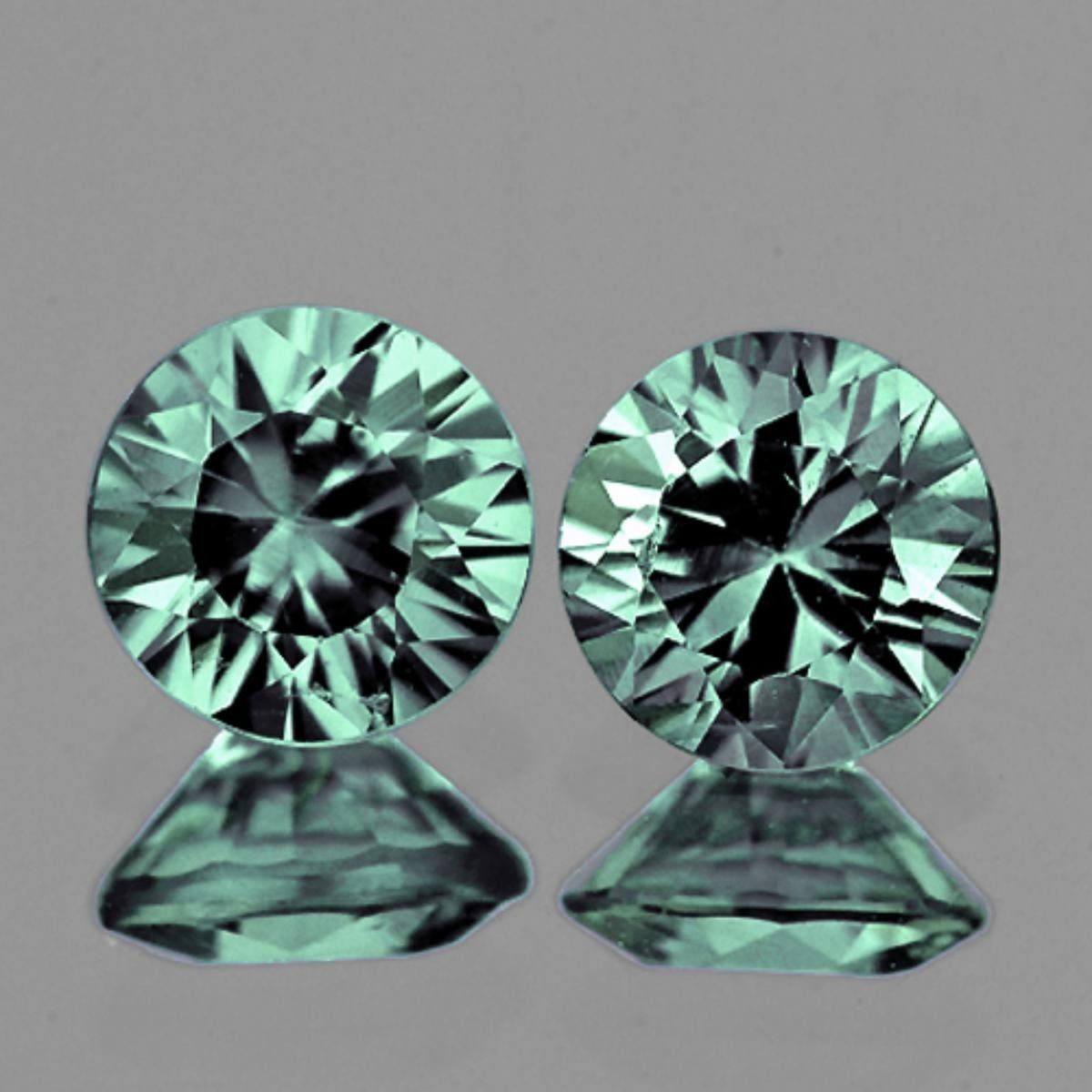 Natural Green Sapphire SHAPE : Round (Diamond Cut) SIZE ( L x W x D ) : 4.00 mm QUANTITY : 2 pieces ( Perfectly Matched Pair) COLOR : Bluish Green CLARITY : Flawless-VVS1 AAA Grade ORIGIN : Ceylon HARDNESS : 9 LUSTER : Excellent!!! TREATMENT : Heated