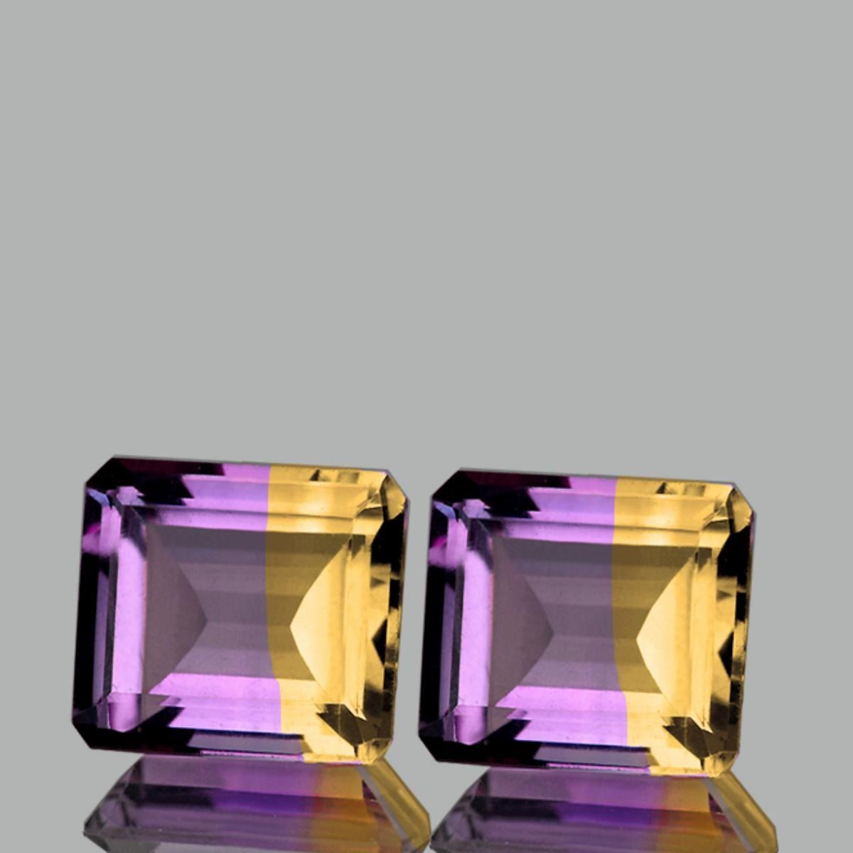 Natural Ametrine; WEIGHT : 20.56 cts; SHAPE : Octagon Emerald Cut; SIZE ( L x W x D ) : 13.50 x 11.50 mm; QUANTITY : 2 pieces (Matching Pair) COLOR : Bi-Color; (Golden Yellow and Purple ) AAA Color; CLARITY : Flawless-VVS1; ORIGIN : Bolivia; HARDNESS : 7; LUSTER : Excellent!!! TREATMENT : 100% Natural Unheated;