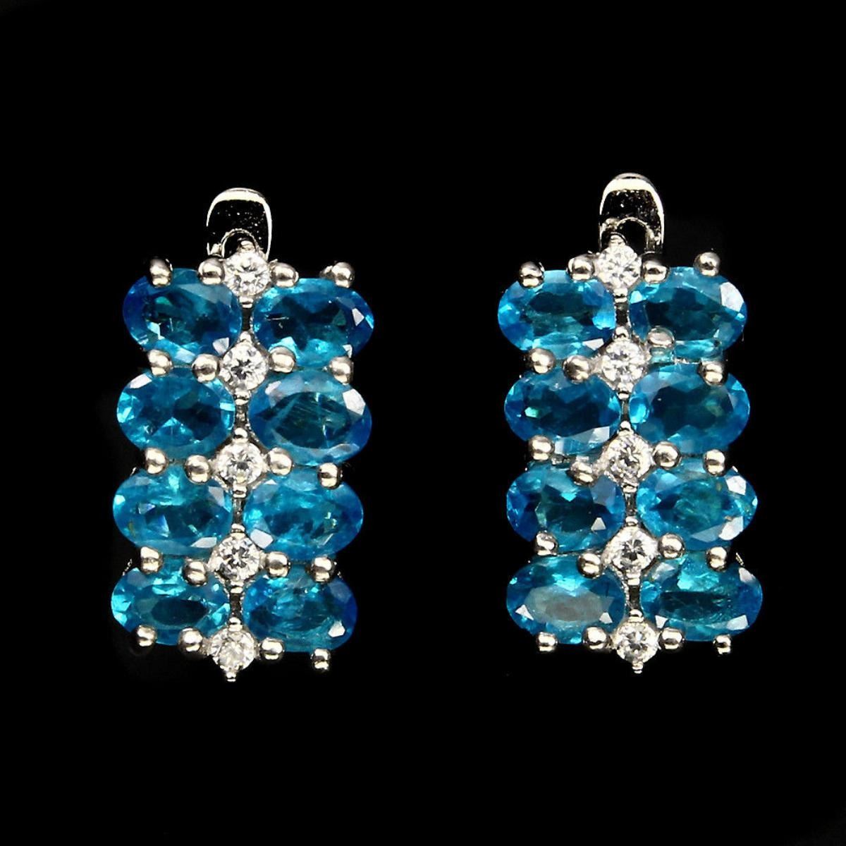 925 STERLING SILVER....... PLATE.......... 14K WHITE GOLD MAIN STONE APATITE TOTAL WEIGHT 20.69 CT (TOTAL WEIGHT OF SILVER + STONE) DIMENSION * STONE 4.0 X 3.0 MM. * CZ 1.0 MM. * FACE EARRINGS 15.0 X 8.0 MM. MAIN STONE SHAPE OVAL CUT MAIN STONE COLOR AAA NEON BLUE CLARITY/GRADE IF TO VVS LUSTER ELEGANT TREATMENT HEATED ORIGIN Brazil HARDNESS 5.0