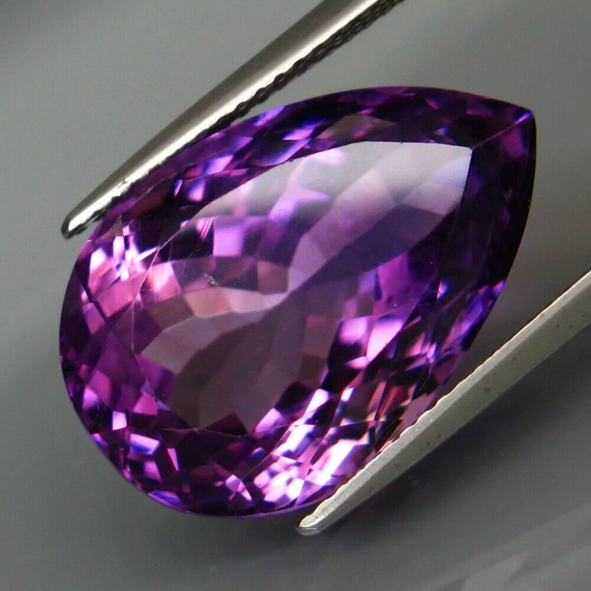 Amethyst SHAPE Pear Shape WEIGHT 16.84 Ct. SIZE 19.7 X 13.1 X 10.9 mm QUANTITY 1 Piece; COLOR Purple CLARITY Clean LUSTER Superior ORIGIN Brazil; TREATMENT None HARDNESS 7