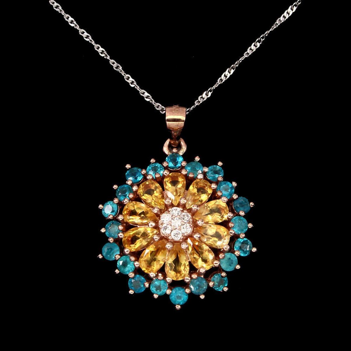 925 STERLING SILVER;PLATE2-TONE WHITE & ROSE 14K GOLD;LENGTH (INCHES)16;;MAIN STONECITRINE;OTHER GEMSAPATITE,CUBIC ZIRCONIA;TOTAL WEIGHT24.0 CT (TOTAL WEIGHT OF SILVER + STONE)DIMENSION* STONE 2.5 TO 5.0 X 3.0 MM. * CZ 1.0 MM. * STONES PART LENGTH 30.0 X 22.0 MM.;MAIN STONE SHAPEPEAR CUT;MAIN STONE COLORTOP RICH YELLOW;CLARITY/GRADEIF TO VVS;LUSTERDELUXE;TREATMENTUNHEATED;ORIGINBRAZIL;HARDNESS7