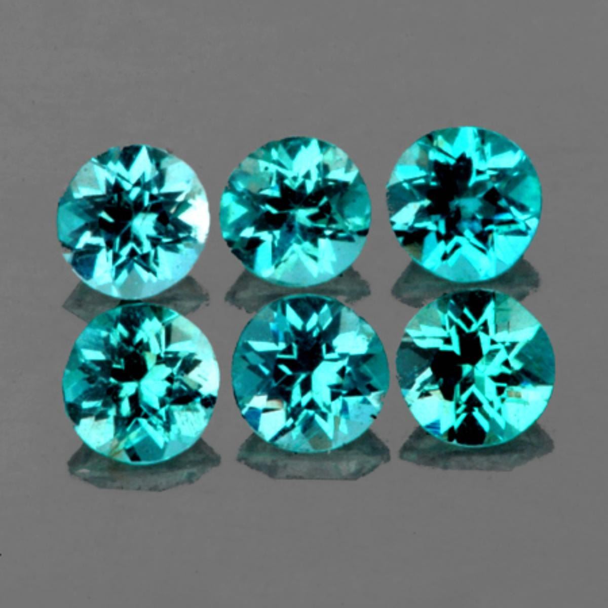 Natural Apatite ........... SHAPE : Round SIZE ( L x W x D ) : 4.30 mm; QUANTITY : 6 pieces(Perfectly Match Set) COLOR : Greenish Blue AAA COLOR; CLARITY : IF-VVS1; ORIGIN : Brazil; HARDNESS : 5; LUSTER : Excellent!!! TREATMENT : 100% Natural Unheated
