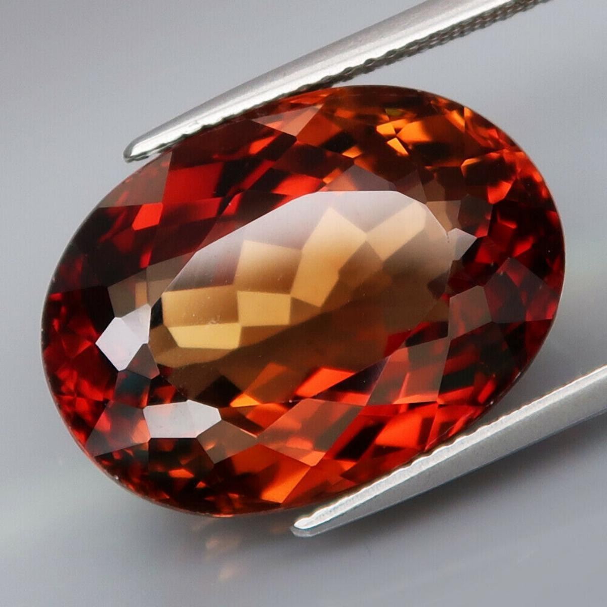 Imperial Topaz SHAPE Oval WEIGHT 24.78 Ct.SIZE 19.7 X 14.3 X 10.5 mm ; QUANTITY 1 Piece COLOR Imperial Champagne ; CLARITY VS; LUSTER Superior ; ORIGIN Brazil; TREATMENT Radiated HARDNESS 8