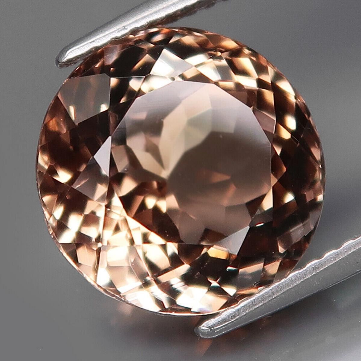Imperial Topaz SHAPE Round WEIGHT 8.68 Ct.SIZE 11.8 X 11.8 X 8 mm QUANTITY 1 Piece COLOR Peach Champagne CLARITY CLEAN LUSTER Superior ORIGIN Brazil TREATMENT Radiated HARDNESS 8