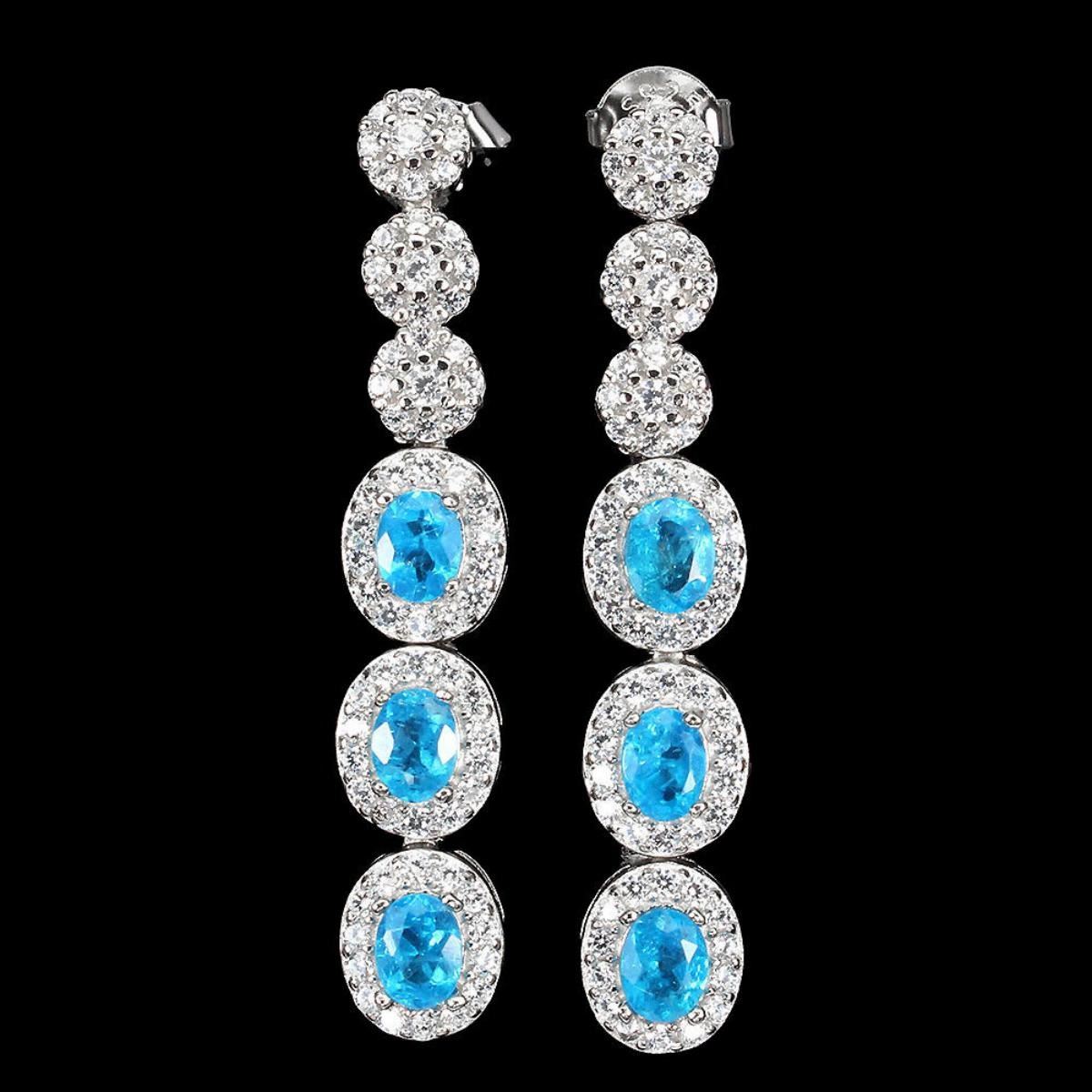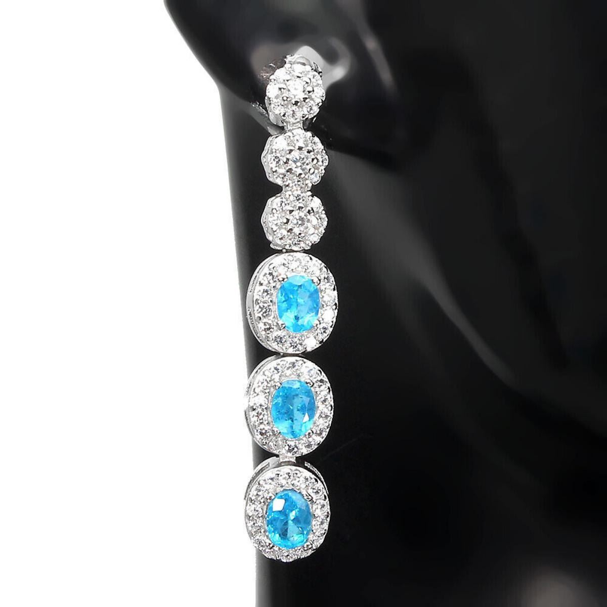Natural Brazil Neon Blue Apatite Earrings; 925 STERLING SILVERPLATE-14K WHITE GOLD;MAIN STONE-APATITE;TOTAL WEIGHT-4.89 GRAM (TOTAL WEIGHT OF SILVER + STONE)DIMENSION-* STONE 4.0 X 3.0 MM.;* FACE EARRINGS- 34.0 X 6.0 MM.;MAIN STONE SHAPE-OVAL CUT;MAIN STONE COLOR- NEON BLUE;CLARITY/GRADE-IF TO VVS;TREATMENT-UNHEATED;ORIGIN-AFRICA;HARDNESS-5;