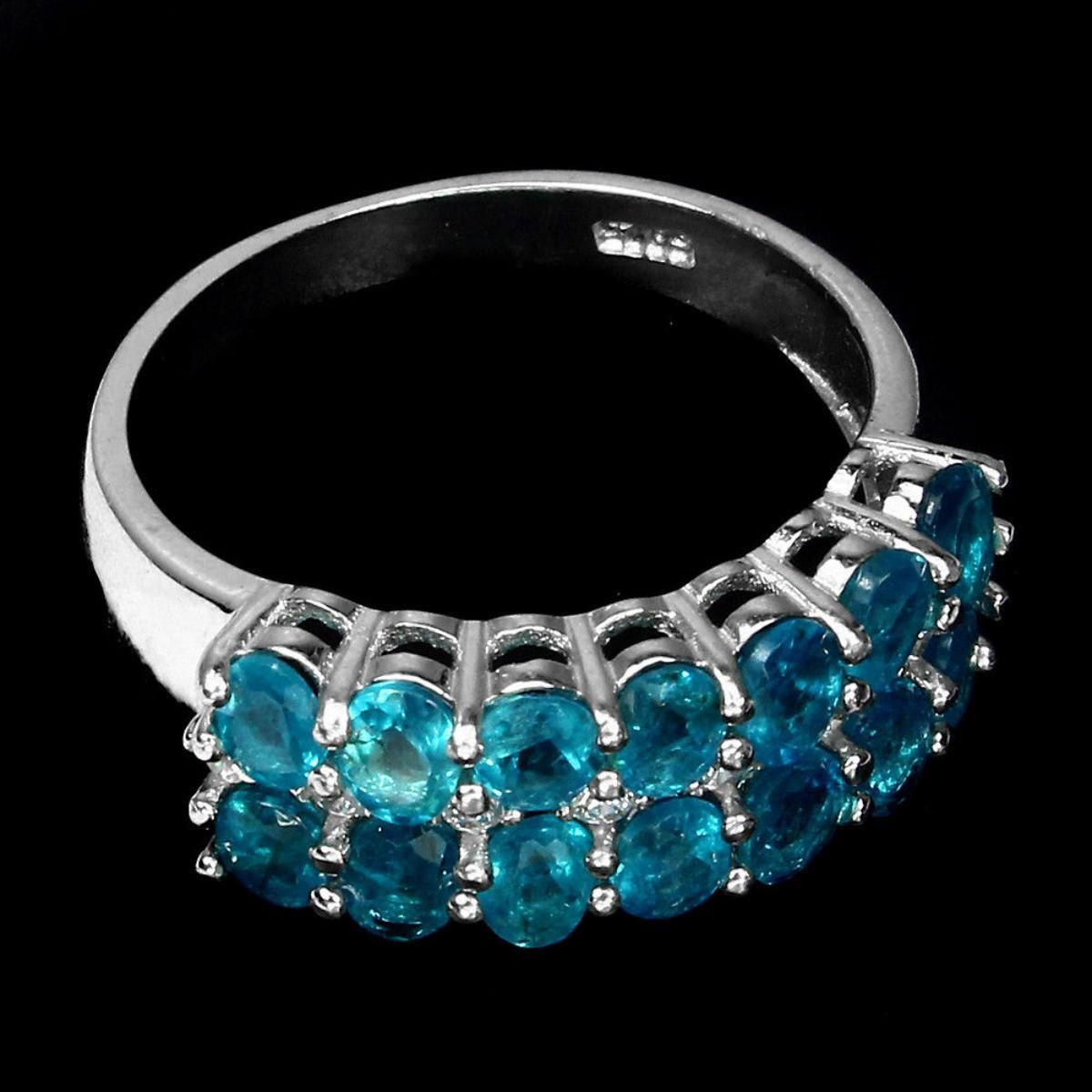925 STERLING SILVER.... PLATE 14K WHITE GOLD; RING SIZE 7.5 (can be resized) MAIN STONE APATITE OTHER GEMS CUBIC ZIRCONIA TOTAL WEIGHT 20.62 CT (TOTAL WEIGHT OF SILVER + STONE) DIMENSION * STONE 4.0 X 3.0 MM. * CZ 1.5 MM. * FACE RING 22.0 X 8.0 MM. MAIN STONE SHAPE OVAL CUT MAIN STONE COLOR AAA NEON BLUE CLARITY/GRADE IF TO VVS LUSTER GORGEOUS ORIGIN - Brazil; HARDNESS 5.0