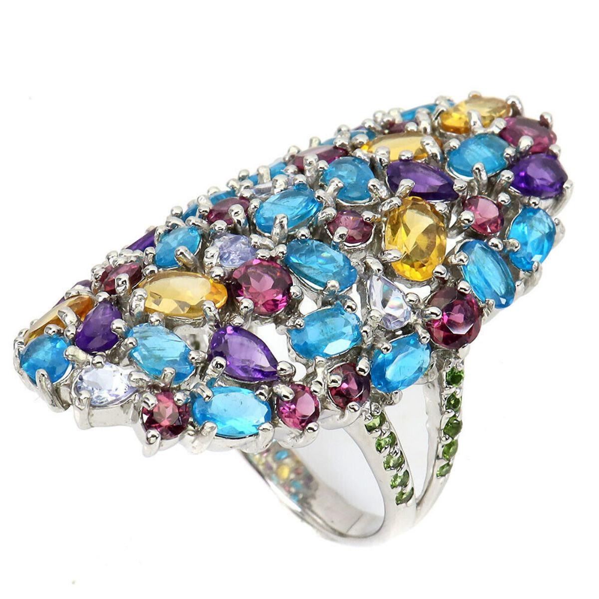 925 STERLING SILVER;PLATE-14K WHITE GOLD;RING SIZE/Resizeable-9;MAIN STONE-CITRINE;OTHER GEMS-AMETHYST, APATITE, CHROME DIOPSIDE, RHODOLITE GARNET;TOTAL WEIGHT-13.35 GRAM (TOTAL WEIGHT OF SILVER + STONE)DIMENSION-* STONE 1.5 TO 6.0 X 4.0 MM.;* FACE RING- 42.0 X 23.0 MM.;MAIN STONE SHAPE-OVAL CUT;MAIN STONE COLOR-TOP RICH YELLOW;CLARITY/GRADE-IF TO VVS;TREATMENT-UNHEATED;ORIGIN-BRAZIL;HARDNESS-7;