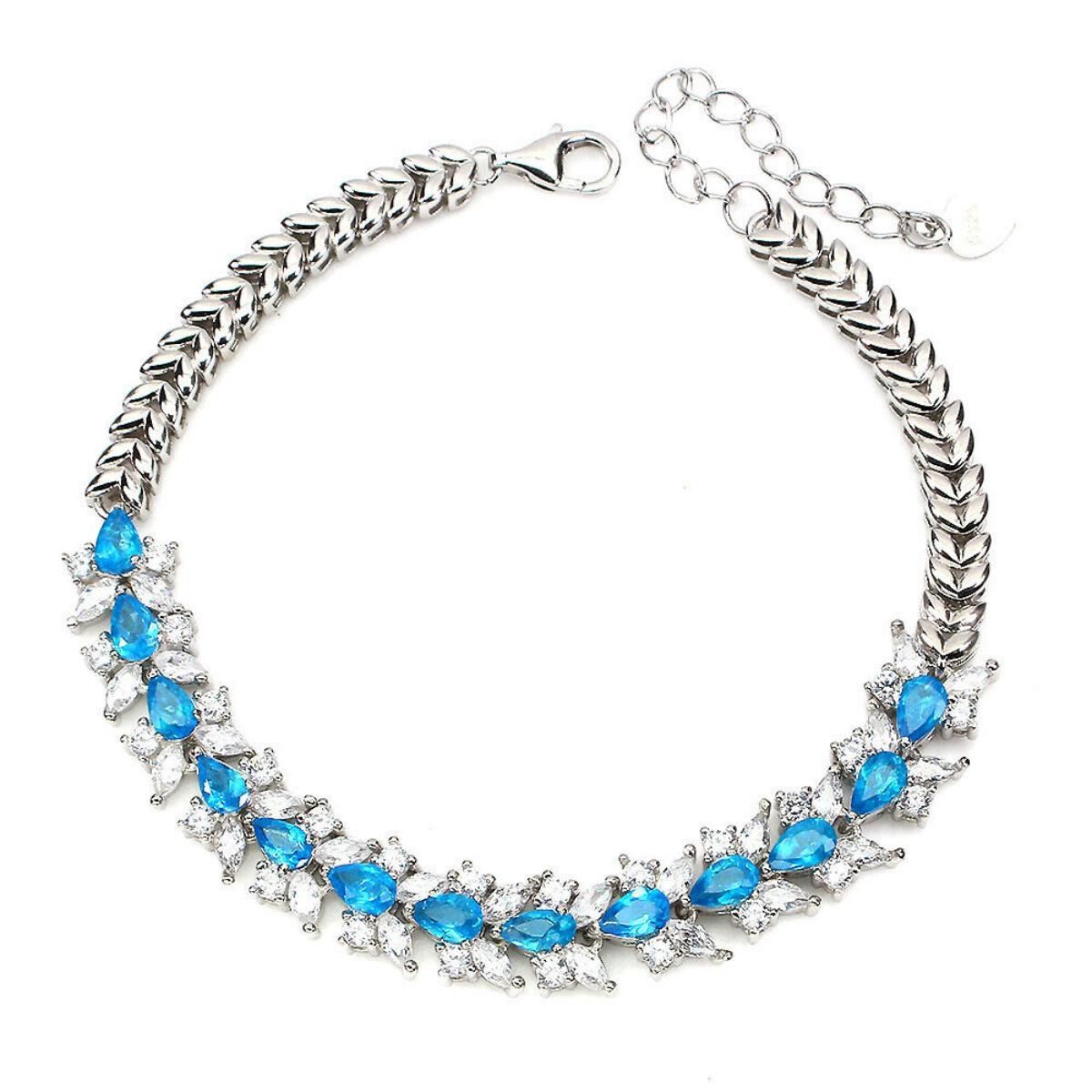 925 STERLING SILVER;PLATE-14K WHITE GOLD;LENGTH (INCHES)7;MAIN STONE-APATITE;TOTAL WEIG-HT-12.08 GRAM (TOTAL WEIGHT OF SILVER + STONE)DIMENSION* STONE 5.0 X 3.0 MM. * CZ 2.0 TO 4.0 X 2.0 MM. * TOTAL LENGTH 7.0 INCHES. * FACE BRACELET 85.0 X 8.0 MM.;MAIN STONE SHAPE-PEAR CUT;MAIN STONE COLOR-NEON BLUE;CLARITY/GRADE-IF TO VVS;LUSTER-GORGEOUS;TREATMENT-UNHEATED;ORIGIN-Brazil;HARDNESS-5;