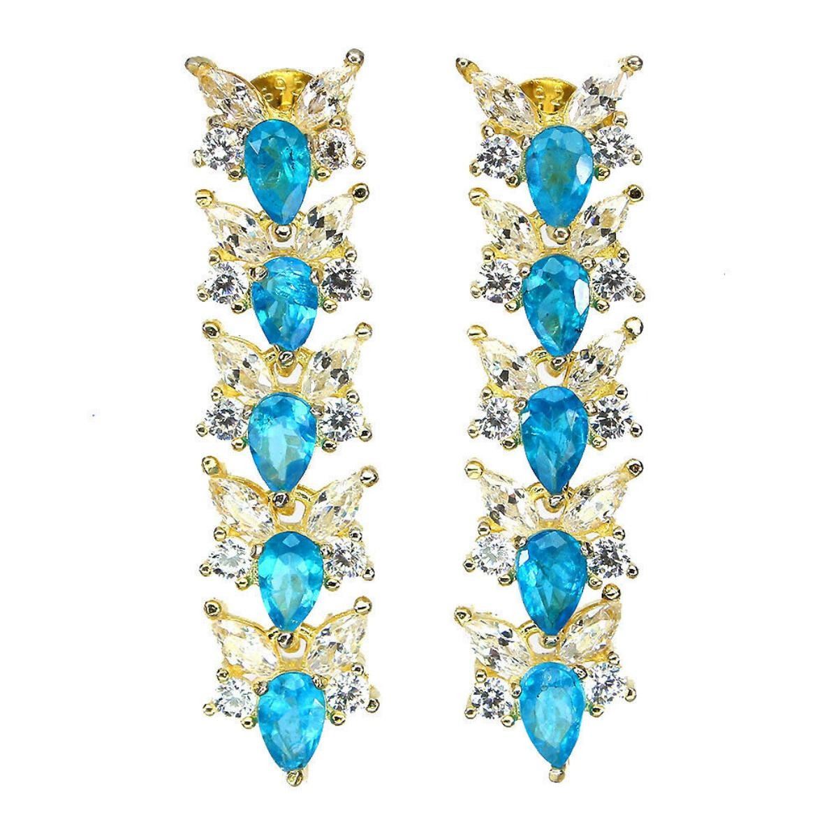 925 STERLING SILVER;PLATE-14K YELLOW GOLD;MAIN STONE-APATITE;TOTAL WEIGHT--6.04 GRAM (TOTAL WEIGHT OF SILVER + STONE)DIMENSION-* STONE 5.0 X 3.0 MM. * CZ 2.0 TO 4.0 X 2.0 MM. * FACE EARRINGS- 33.0 X 6.0 MM.;MAIN STONE SHAPE--NEON BLUE;CLARITY/GRADE-IF TO VVS;TREATMENT-UNHEATED;ORIGIN-Brazil;HARDNESS-5;-