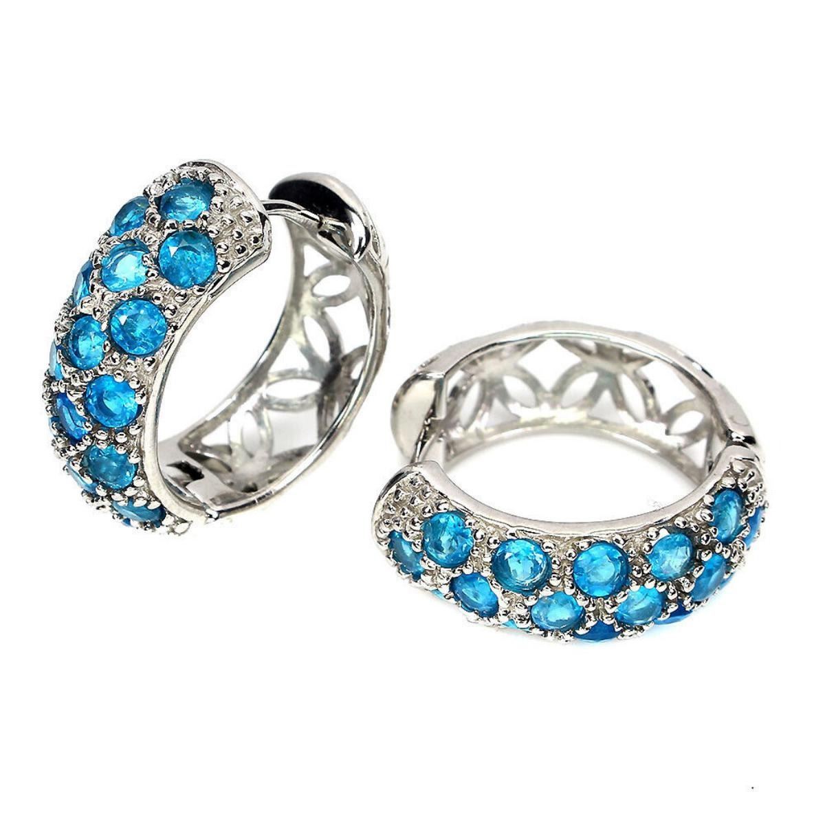 925 STERLING SILVER;PLATE-14K WHITE GOLD;MAIN STONE-APATITE;TOTAL WEIGHT-10.46 GRAM (TOTAL WEIGHT OF SILVER + STONE)DIMENSION-* STONE 3.0 MM.;* FACE EARRINGS -24.0 X 9.0 MM.;MAIN STONE SHAPE-ROUND CUT;MAIN STONE COLOR-PARAIBA BLUE;CLARITY/GRADE-IF TO VVS;TREATMENT-UNHEATED;HARDNESS-5;