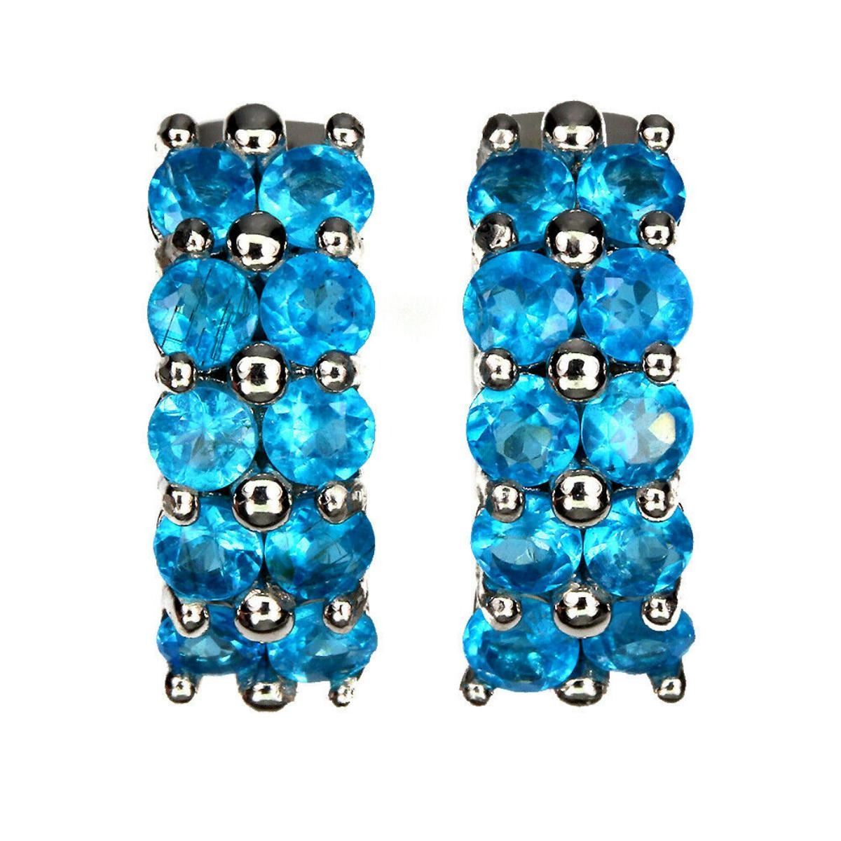 925 STERLING SILVER;PLATE-14K WHITE GOLD;MAIN STONE-APATITE;TOTAL WEIGHT-5.52 GRAM (TOTAL WEIGHT OF SILVER + STONE)DIMENSION-* STONE 3.0 MM.;* FACE EARRINGS- 17.0 X 6.0 MM.;MAIN STONE SHAPE-ROUND CUT;MAIN STONE COLOR-PARAIBA BLUE;CLARITY/GRADE-IF TO VVS;TREATMENT-UNHEATED;HARDNESS-5;