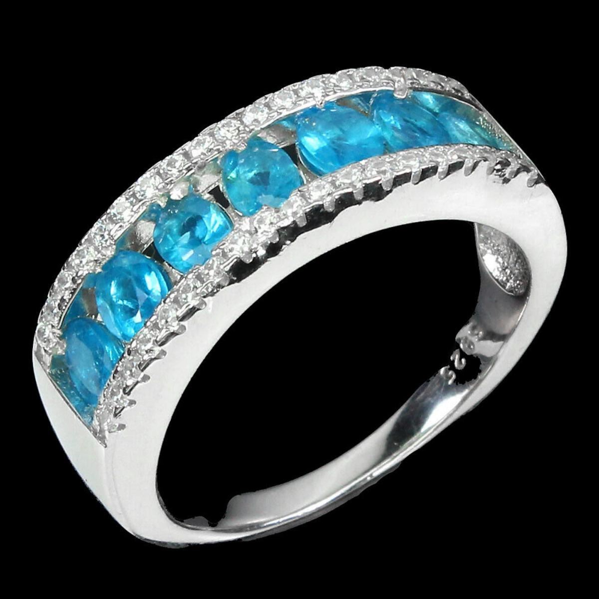925 STERLING SILVER;PLATE-14K WHITE GOLD;RING SIZE/Resizeable-7.5;MAIN STONE-APATITE;TOTAL WEIGHT-4.11 GRAM (TOTAL WEIGHT OF SILVER + STONE)DIMENSION-* STONE 4.0 X 3.0 MM. * RING SIZE 7.5 * FACE RING 22.0 X 7.0 MM.MAIN STONE SHAPe-ROUND CUt;MAIN STONE COLOR-TOP PARAIBA BLUCLARITY/GRADE-IF TO VVTREATMENT-UNHEATED;ORIGIN-Brazil;HARDNESS-5.