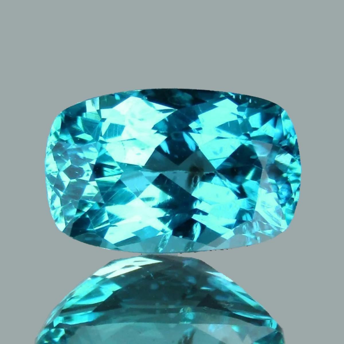 Natural Apatite; WEIGHT : 1.46 cts; SHAPE : Cushion; SIZE ( L x W x D ) : 7.97 x 5.68 x 4.20 mm; QUANTITY : 1 piece; COLOR : Paraiba Blue; AAA Color; CLARITY :(SI) AAA Grade; ORIGIN : Brazil; HARDNESS : 5; LUSTER : AAA Fire!!! TREATMENT : 100% Natural Unheated ;