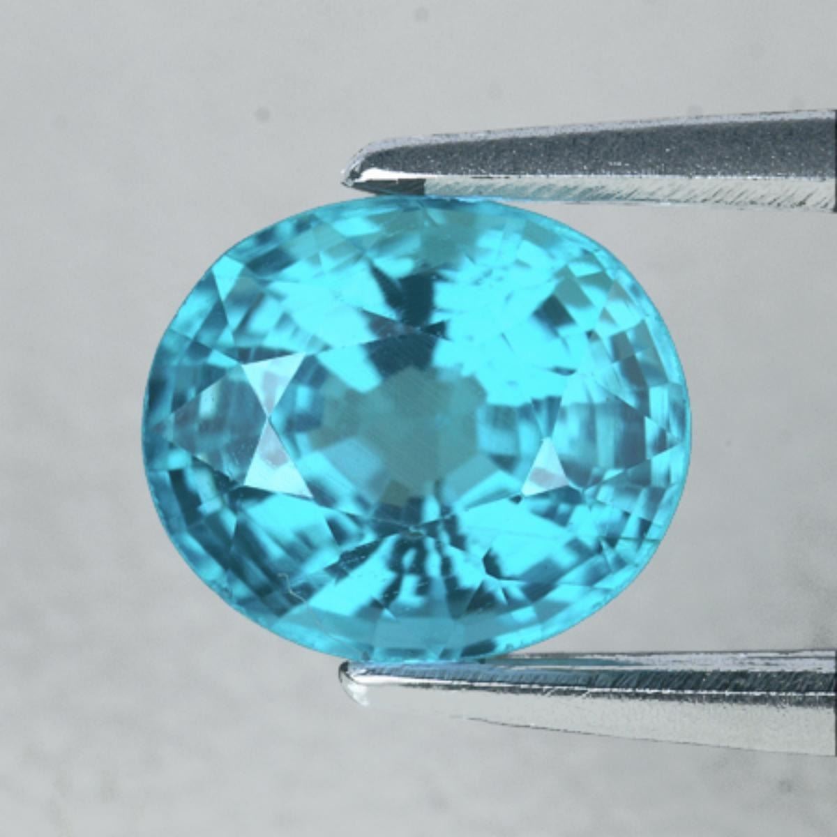 Natural Apatite WEIGHT : 2.10 cts; SHAPE : Oval; SIZE ( L x W x D ) : 8.54 x 7.01 x 5.04 mm; QUANTITY : 1 piece; COLOR : Paraiba Blue; AAA Color; CLARITY : VVS-VS ; AAA Grade; ORIGIN : Brazil; HARDNESS : 5; LUSTER : Excellent!!! TREATMENT : 100% Natural Unheated;
