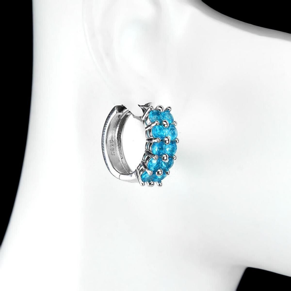 925 STERLING SILVER;PLATE-14K WHITE GOLD;MAIN STONE-APATITE;TOTAL WEIGHT-5.54 GRAM (TOTAL WEIGHT OF SILVER + STONE)DIMENSION-* STONE 3.0 MM.;* FACE EARRINGS- 17.0 X 6.0 MM.;MAIN STONE SHAPE-ROUND CUT;MAIN STONE COLOR-PARAIBA BLUE;TREATMENT-UNHEATED;ORIGIN-BRAZIL;HARDNESS-5;