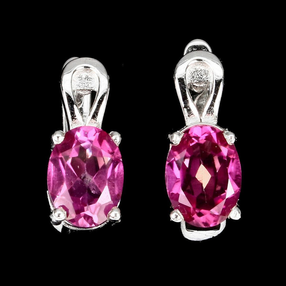 925 STERLING SILVER;PLATE-14K WHITE GOLD;MAIN STONE-PINK TOPAZ;OTHER GEMSTOTAL WEIGHT-3.77 GRAM (TOTAL WEIGHT OF SILVER + STONE)DIMENSION* STONE 8.0 X 6.0 MM. * FACE EARRINGS 14.0 X 6.0 MM.MAIN STONE SHAPE-OVAL CUT;MAIN STONE COLOR-TOP RICH PINK;CLARITY/GRADE-IF TO VVS;ORIGIN-BRAZIL;HARDNESS-8.0;