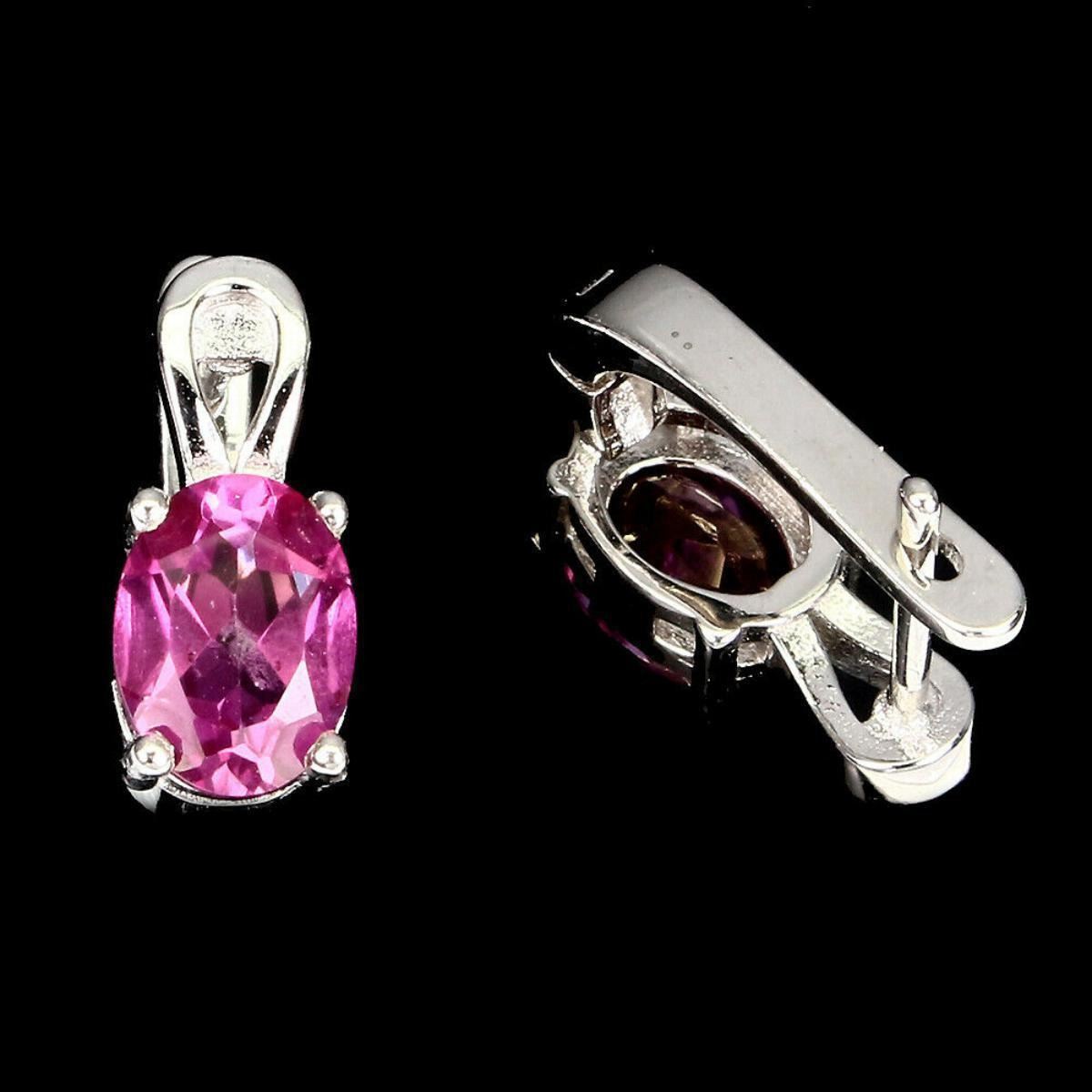 925 STERLING SILVER;PLATE-14K WHITE GOLD;MAIN STONE-PINK TOPAZ;OTHER GEMSTOTAL WEIGHT-3.77 GRAM (TOTAL WEIGHT OF SILVER + STONE)DIMENSION* STONE 8.0 X 6.0 MM. * FACE EARRINGS 14.0 X 6.0 MM.MAIN STONE SHAPE-OVAL CUT;MAIN STONE COLOR-TOP RICH PINK;CLARITY/GRADE-IF TO VVS;ORIGIN-BRAZIL;HARDNESS-8.0;