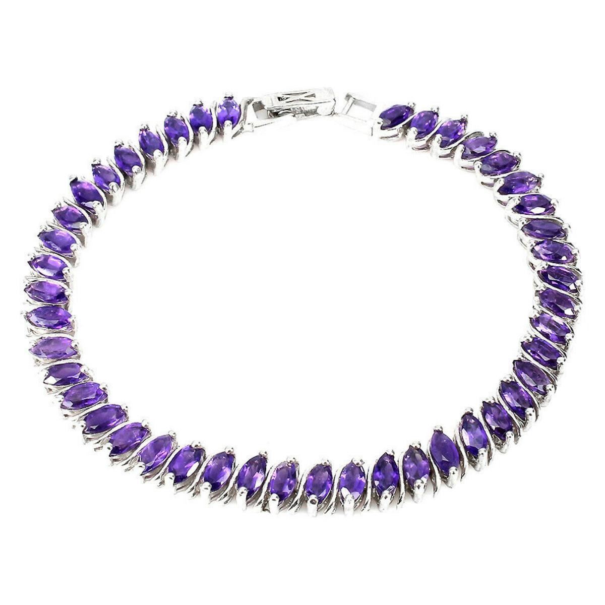 925 STERLING SILVER;PLATE-14K WHITE GOLD;LENGTH (INCHES)-7.5;MAIN STONE-AMETHYST;TOTAL WEIGHT-17.89 GRAM (TOTAL WEIGHT OF SILVER + STONE)DIMENSION-* STONE 6.0 X 3.0 MM. * LENGTH 7.5 INCHES.* FACE BRACELET- 180.0 X 7.0 MM.;MAIN STONE SHAPE-MARQUISE CUT;MAIN STONE COLOR- RICH PURPLE;TREATMENT-UNHEATED;ORIGIN-BRAZIL;HARDNESS-7;