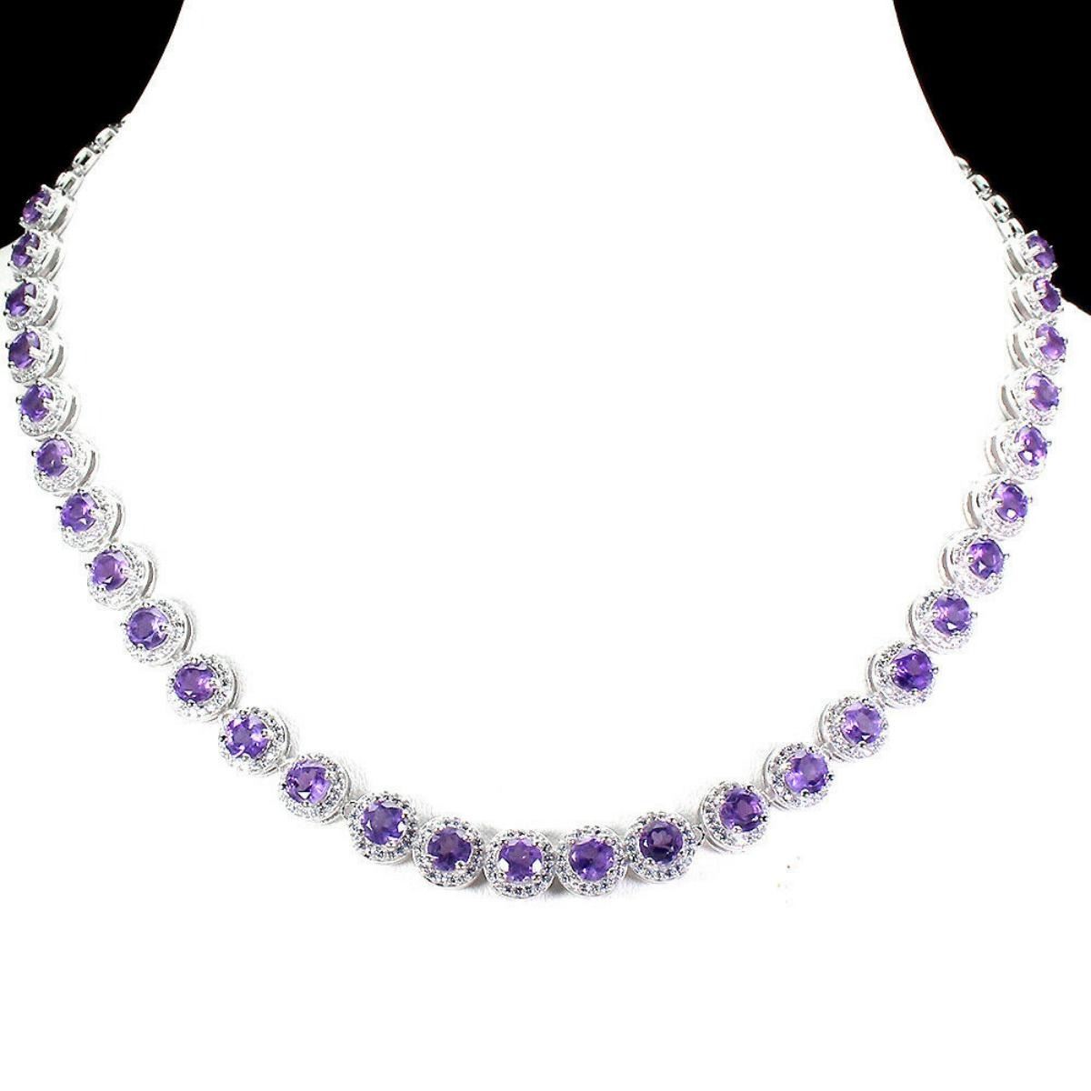 925 STERLING SILVER;PLATE-14K WHITE GOLD;LENGTH (INCHES)19;MAIN STONE-AMETHYST;TOTAL WEIGHT-30.08 GRAM (TOTAL WEIGHT OF SILVER + STONE)DIMENSION-* STONE 5.0 MM. * CZ 1.0 MM. * TOTAL LENGTH 19.0 INCHES. * STONES PART LENGTH 270.0 X 8.0 MM.;MAIN STONE SHAPE-ROUND CUT;MAIN STONE COLOR- PURPLE;CLARITY/GRADE-IF TO VVS;LUSTER-GORGEOUS;TREATMENT-UNHEATED;ORIGIN-BRAZIL;HARDNESS-7;