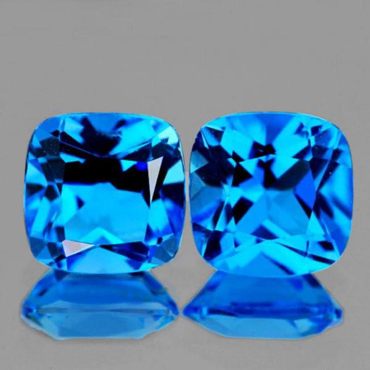 Natural Swiss Blue Topaz;SIZE ( L x W x D ) : 7.00 mm;COLOR : Swiss Blue;SHAPE : Cushion;QUANTITY : 2 pieces;LUSTER : Excellent ;CLARITY : FLAWLESS-VVS; (BEST QUALITY)HARDNESS : 8;ORIGIN : Brazil; TREATMENT : Standard;