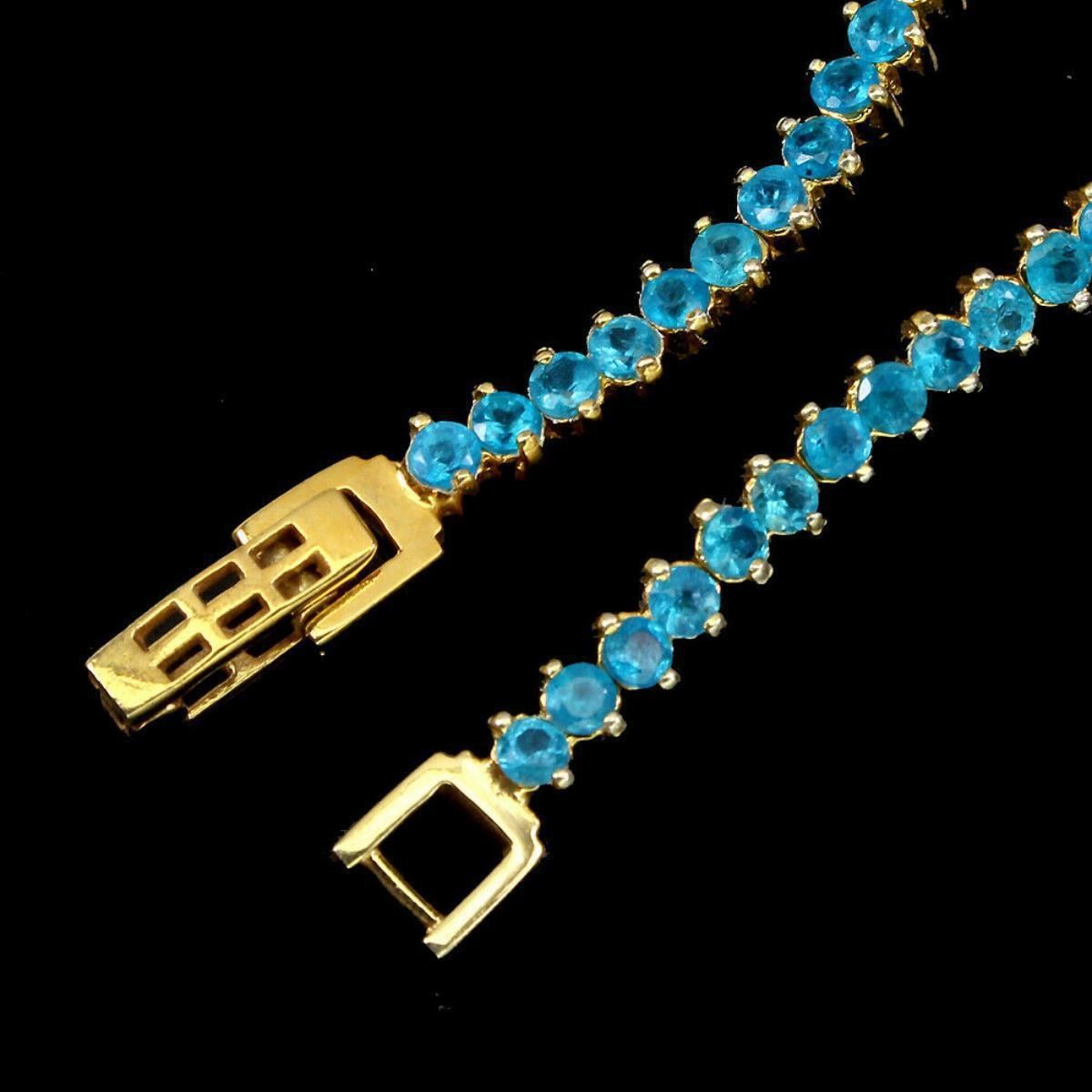 925 STERLING SILVER;PLATE-14K YELLOW GOLD;MAIN STONE-APATITE;TOTAL WEIGHT-8.82 GRAM (TOTAL WEIGHT OF SILVER + STONE)DIMENSION-* STONE 2.5 MM. * FACE BRACELET 171.0 X 4.0 MM.MAIN STONE SHAPE-ROUND CUT;MAIN STONE COLOR-TOP PARAIBA BLUE;CLARITY/GRADE-IF TO VVS;ORIGIN- BRAZIL;HARDNESS-5