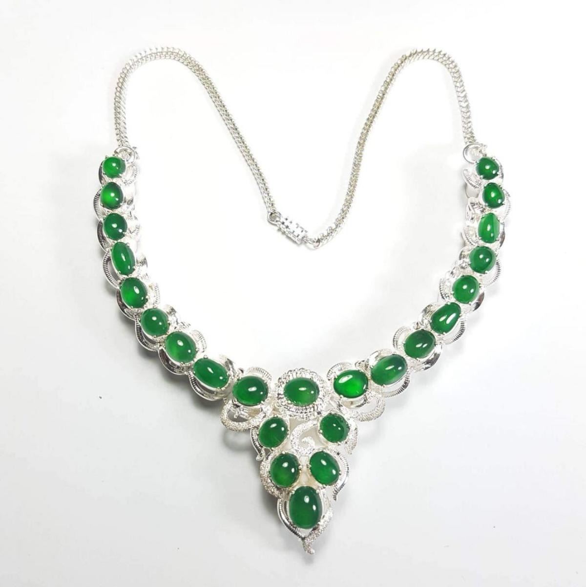 Natural Burma Jade/Jadite 64.89 grams (Total Necklace weight)....Type A Necklace.......sterling silver with 14k white Gold overlay.........Untreated Burma jade Necklace....completely untreated Jade ....Origin - Burma...AGL Certified