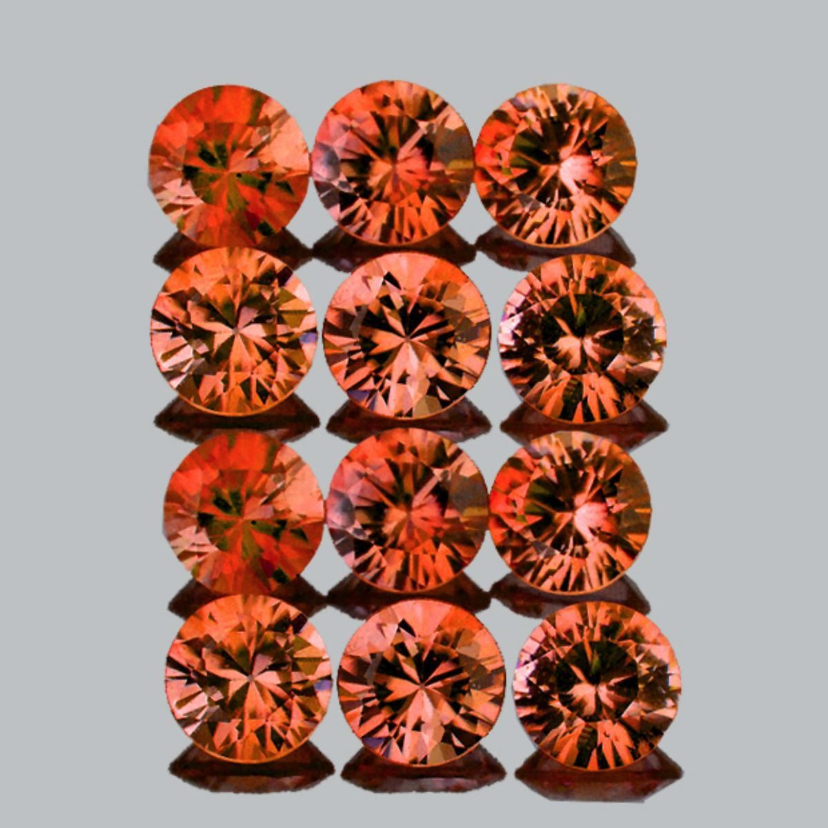 Natural Spinel; SHAPE : Round Brilliant (Machine Cut) SIZE ( L x W x D ) : 2.50 mm; QUANTITY : 12 pieces (Perfect Matched Set) COLOR : Intense Orange; CLARITY : Flawless-VVS1; AAA Grade; ORIGIN : Mogok, Burma; HARDNESS : 8.5; LUSTER : Best AAA Fire!! TREATMENT : 100% Natural Unheated;