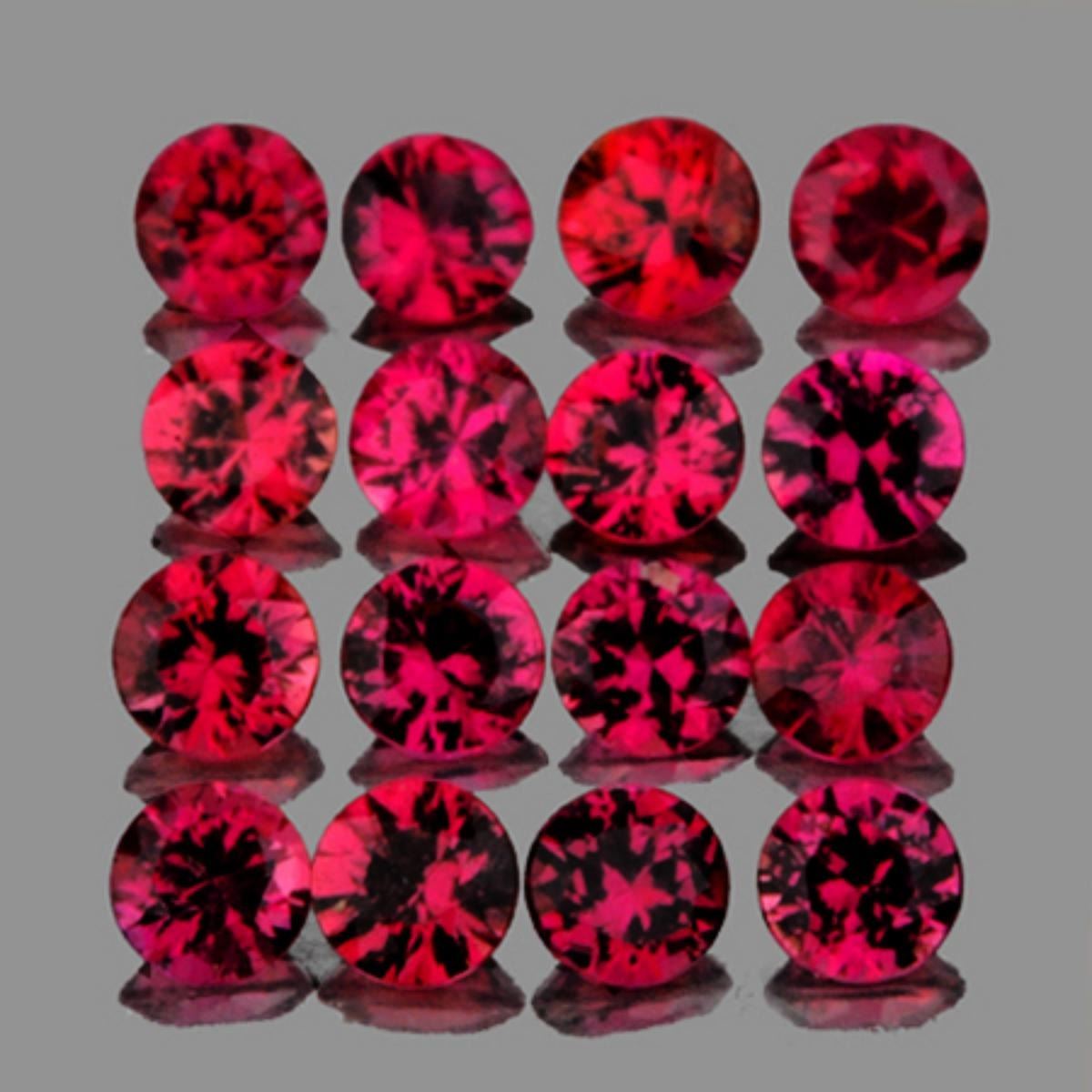 Natural Spinel; SHAPE : Round Brilliant (Machine Cut) SIZE ( L x W x D ) : 2.50 mm; QUANTITY : 16 pieces (Perfect Matched Set) COLOR : Red ; AAA Color; CLARITY : Flawless-VVS1 ; AAA Grade; ORIGIN : Mogok, Burma; HARDNESS : 8.5; LUSTER : Excellent!! TREATMENT : 100% Natural Unheated;