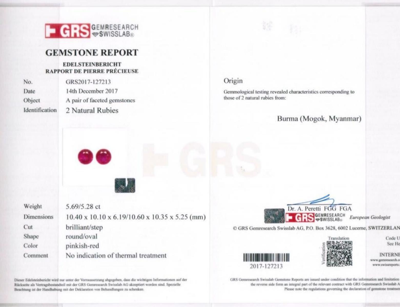 Natural Burma Ruby Gold & Diamond Earrings......Natural Untreated Burma Rubies.....5.69 & 5.27 Cts; Grs Swiss certified....Completely untreated rubies.