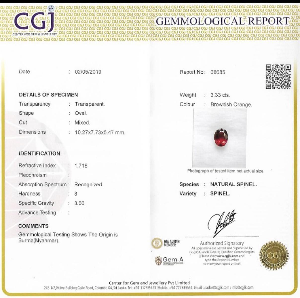 Natural Burma Spinel 3.33 Ct - VS Clarity.....Top Luster Fire.....Origin - Burma.....Certified