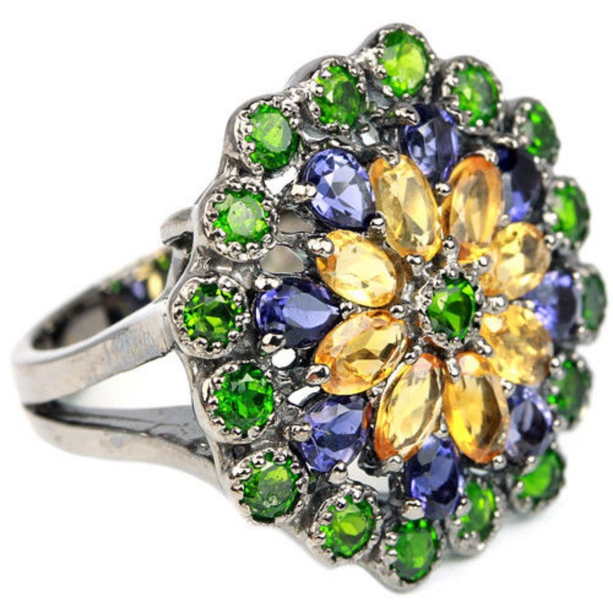 REAL CHROME DIOPSIDE CITRINE SAPPHIRE 925 SILVER RING 14K BLACK GOLD COATING; RING SIZE 7.25 ( can be resized )ITEM QUANTITY1STONE SHAPEOVAL & ROUND PORTUGUESE CUTSTONE DIMENSION5 X 3 MM. , 4 X 3 MM. & 2.7 MM.ITEM WEIGHT8.12 GRAMCOLORMULTI COLORCLARITYIF, VVS - VSLUSTERDAZZLINGTREATMENTUNHEATEDORIGIN OF STONEAFRICA, BRAZIL & THAILANDHARDNESS7.0 - 9.0FACE OF RING 23 X 23 MM.