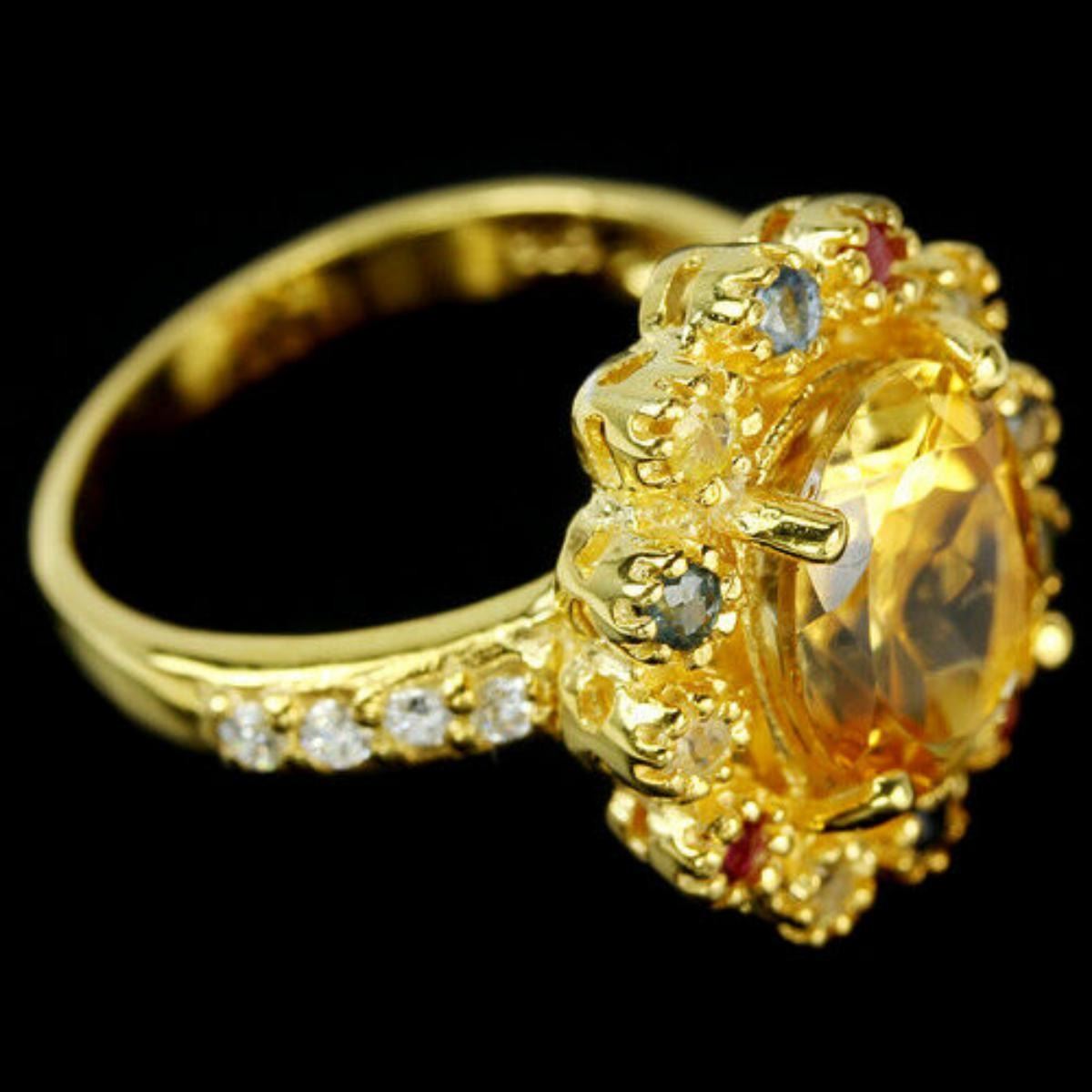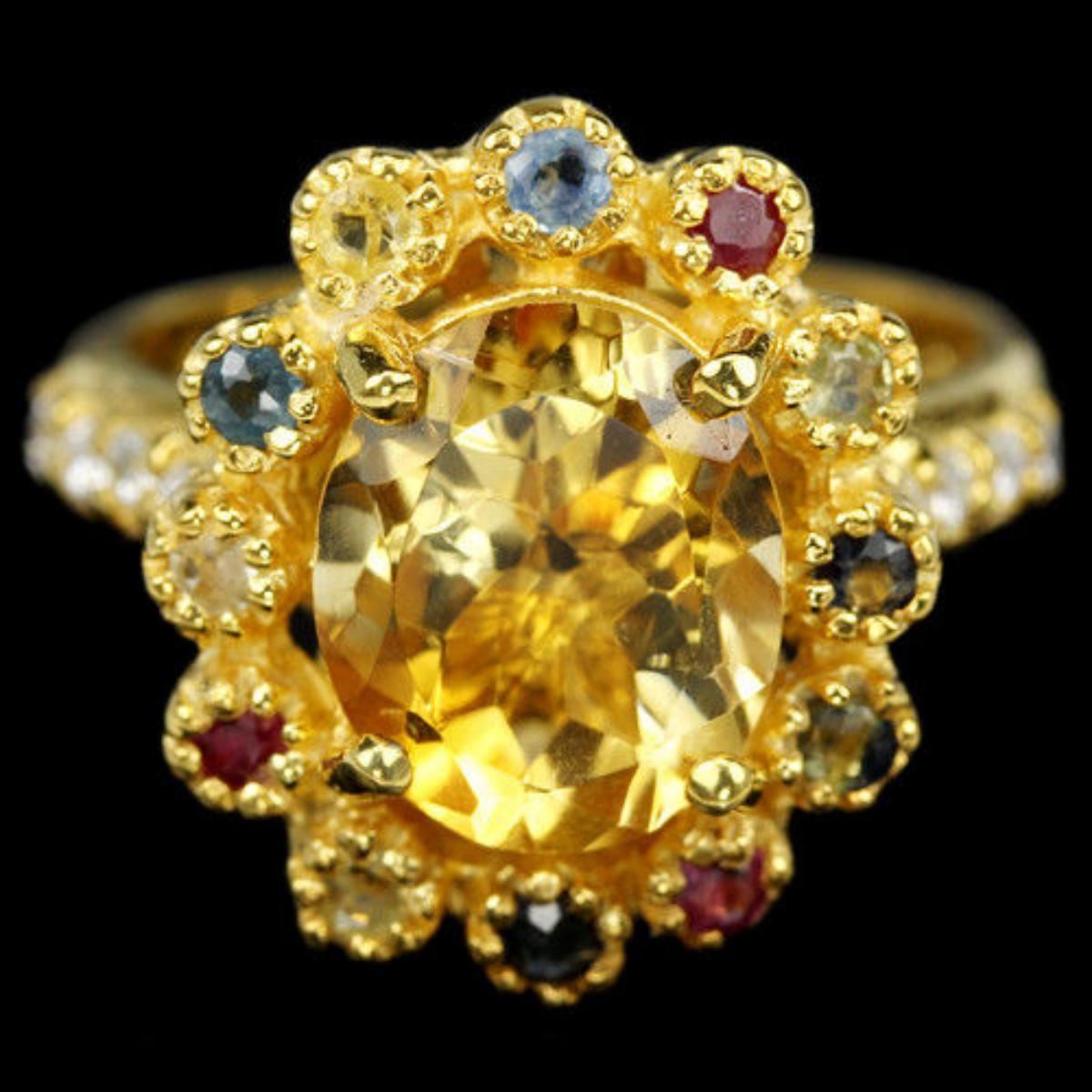 925 sterling silver with 14k white gold plated....ring size 7 (resizeable) total carat weight 28.70 ct...MAIN STONE SIZE:11.1 X 9.1 X 6.1 MM.; Main stone - Citrine...other stone sapphire