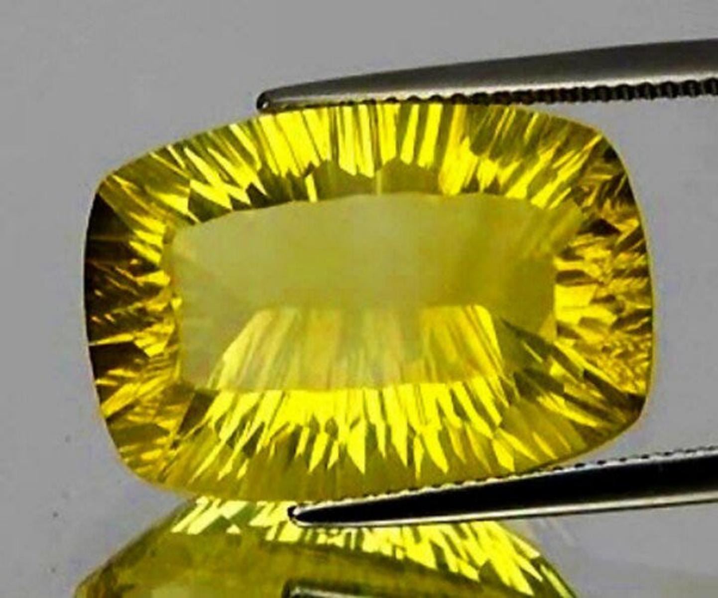 Natural Fluorite WEIGHT : 23.03 cts; SHAPE : Rectangle (Concave Cut) SIZE ( L x W x D ) : 20.60 x 14.60 x 10.06 mm; QUANTITY : 1 piece; COLOR : Canary Yellow AAA COLOR; CLARITY : IF-VVS1 (BEST QUALITY) ORIGIN : USA; HARDNESS : 4-5; LUSTER : Excellent!!! TREATMENT : 100% Natural Unheated;