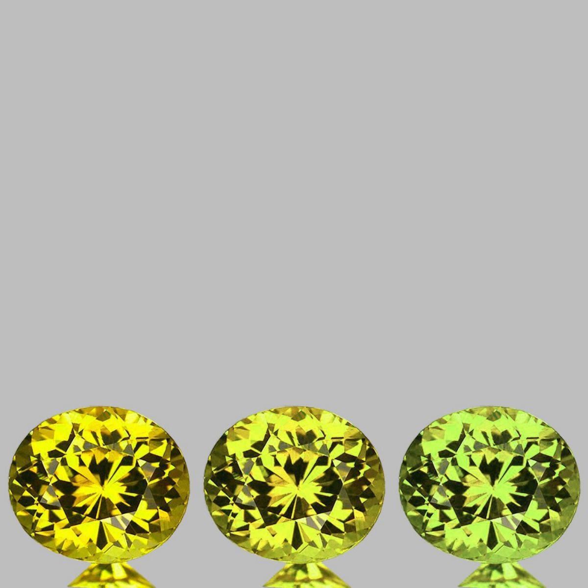 Natural Mali Garnet; WEIGHT : 2.03 cts; SHAPE : Oval (Brilliant Cut) SIZE ( L x W x D ) : 5.50 x 4.50 mm; QUANTITY : 3 pieces ; COLOR : Canary Green & Yellow AAA Color; CLARITY : Flawless-VVS1 AAA Grade; ORIGIN : Sandare Mine in Mali’s Kayes Region; HARDNESS : 7; LUSTER : Best AAA Fire!!! TREATMENT : 100% Natural Unheated;