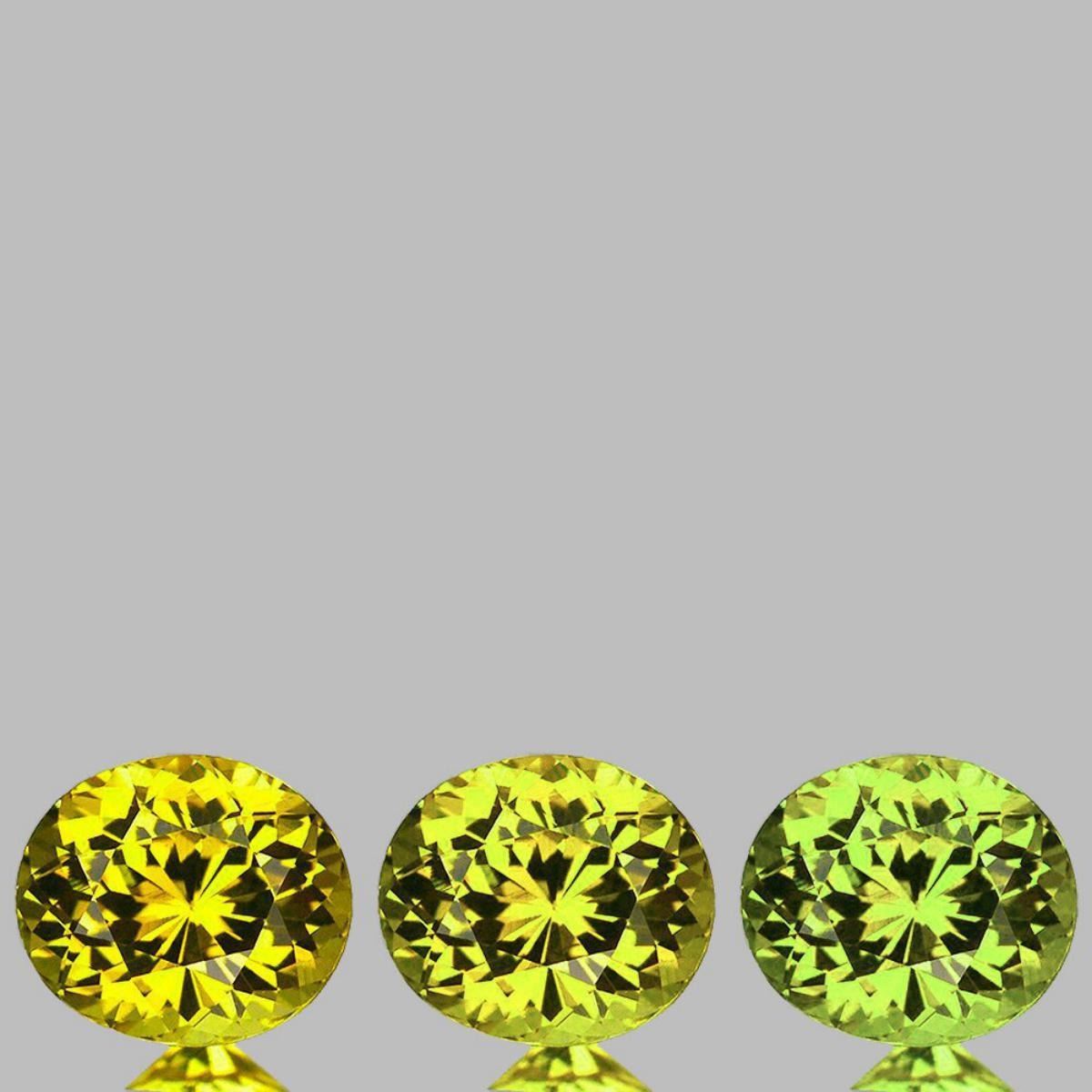 Natural Mali Garnet; WEIGHT : 2.03 cts; SHAPE : Oval (Brilliant Cut) SIZE ( L x W x D ) : 5.50 x 4.50 mm; QUANTITY : 3 pieces ; COLOR : Canary Green & Yellow AAA Color; CLARITY : Flawless-VVS1 AAA Grade; ORIGIN : Sandare Mine in Mali’s Kayes Region; HARDNESS : 7; LUSTER : Best AAA Fire!!! TREATMENT : 100% Natural Unheated;