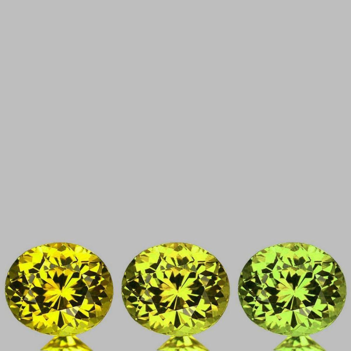Natural Garnet; WEIGHT : 2.03 cts; SHAPE : Oval (Brilliant Cut) SIZE ( L x W x D ) : 5.50 x 4.50 mm; QUANTITY : 3 pieces ; COLOR : Canary Green & Yellow AAA Color; CLARITY : Flawless-VVS1 AAA Grade; ORIGIN : Sandare Mine in Mali?s Kayes Region; HARDNESS : 7; LUSTER : Best AAA Fire!!! TREATMENT : 100% Natural Unheated;