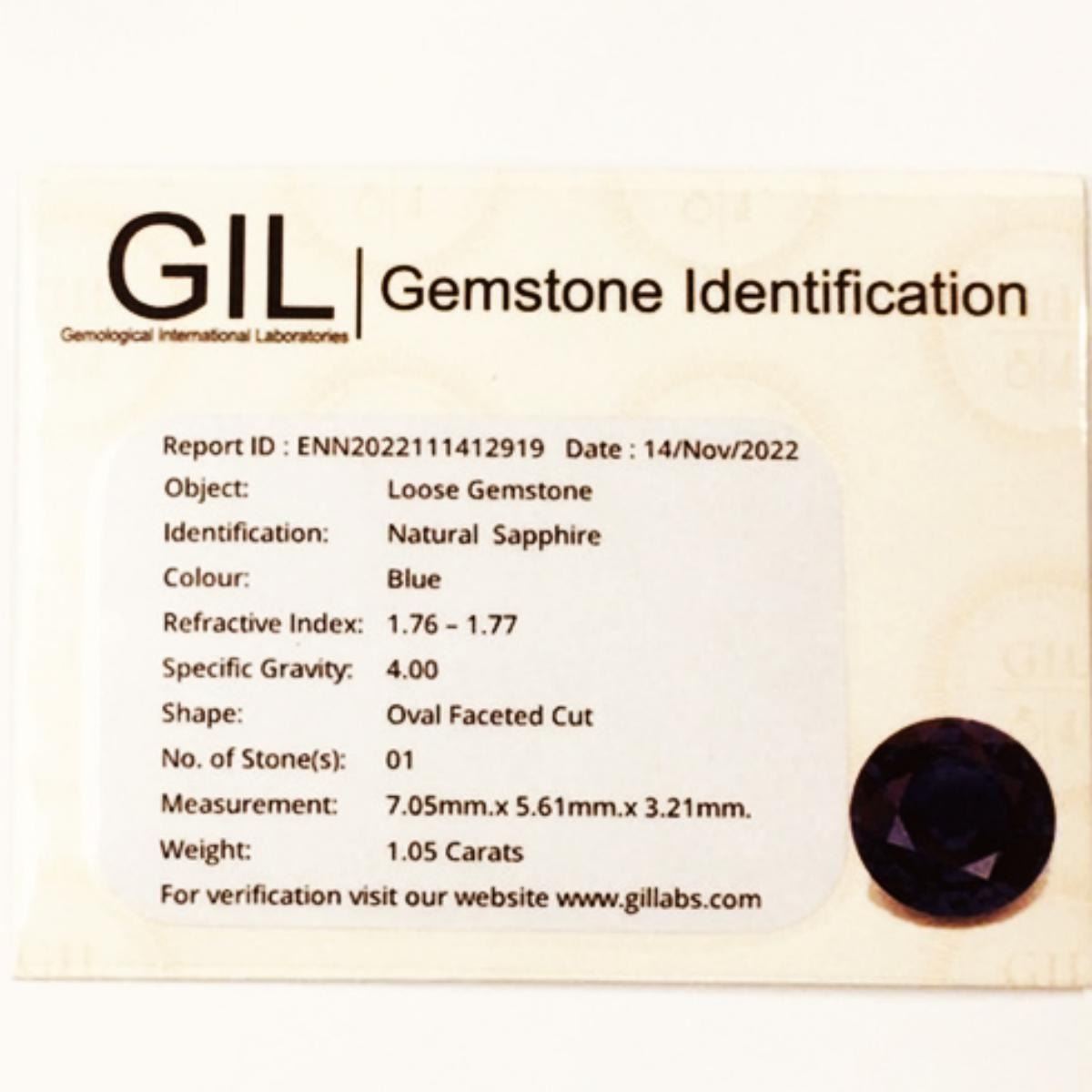 WEIGHT : 1.05 cts; SHAPE : Oval; SIZE ( L x W x D ) : 7.05 x 5.61 x 3.21 mm QUANTITY : 1 piece COLOR : Ceylon Blue; AAA Color CLARITY :VS/VVS ; AAA Grade; ORIGIN : Ceylon; HARDNESS : 9; LUSTER : AAA Fire!!! TREATMENT : Normal Heated 100% Natural;