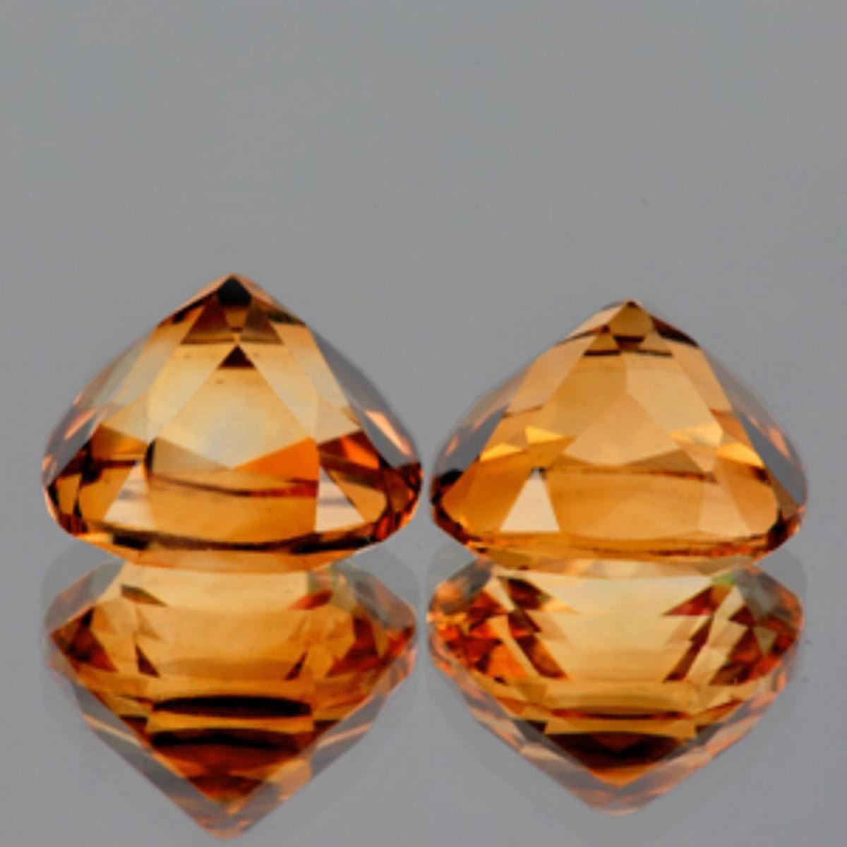 Natural Topaz .... SHAPE : Cushion; SIZE ( L x W x D ) : 9.00 mm; QUANTITY : 2 pieces (Matching Pair) COLOR : Top Champagne Imperial CLARITY : Flawless-VVS1 AAA Grade; ORIGIN : Brazil; HARDNESS : 8; LUSTER : Excellent!!! TREATMENT : Heated