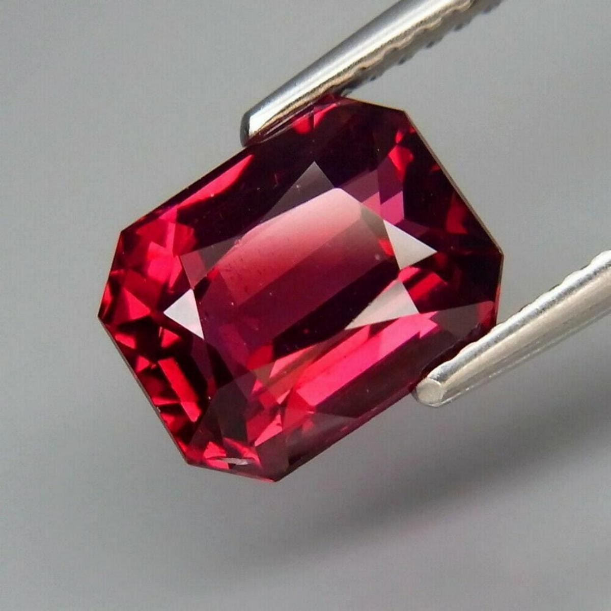 Rhodolite Garnet SHAPE Emerald Cut; WEIGHT 3.75 Ct.SIZE 9.2 X 7.3 X 5.4 mm QUANTITY 1 Piece; COLOR Cherry Pink; CLARITY VS; ORIGIN Africa TREATMENT None; HARDNESS 7-7.5